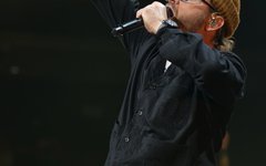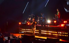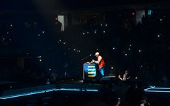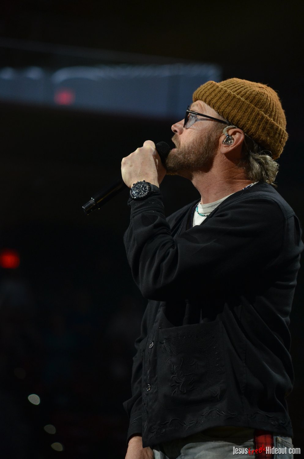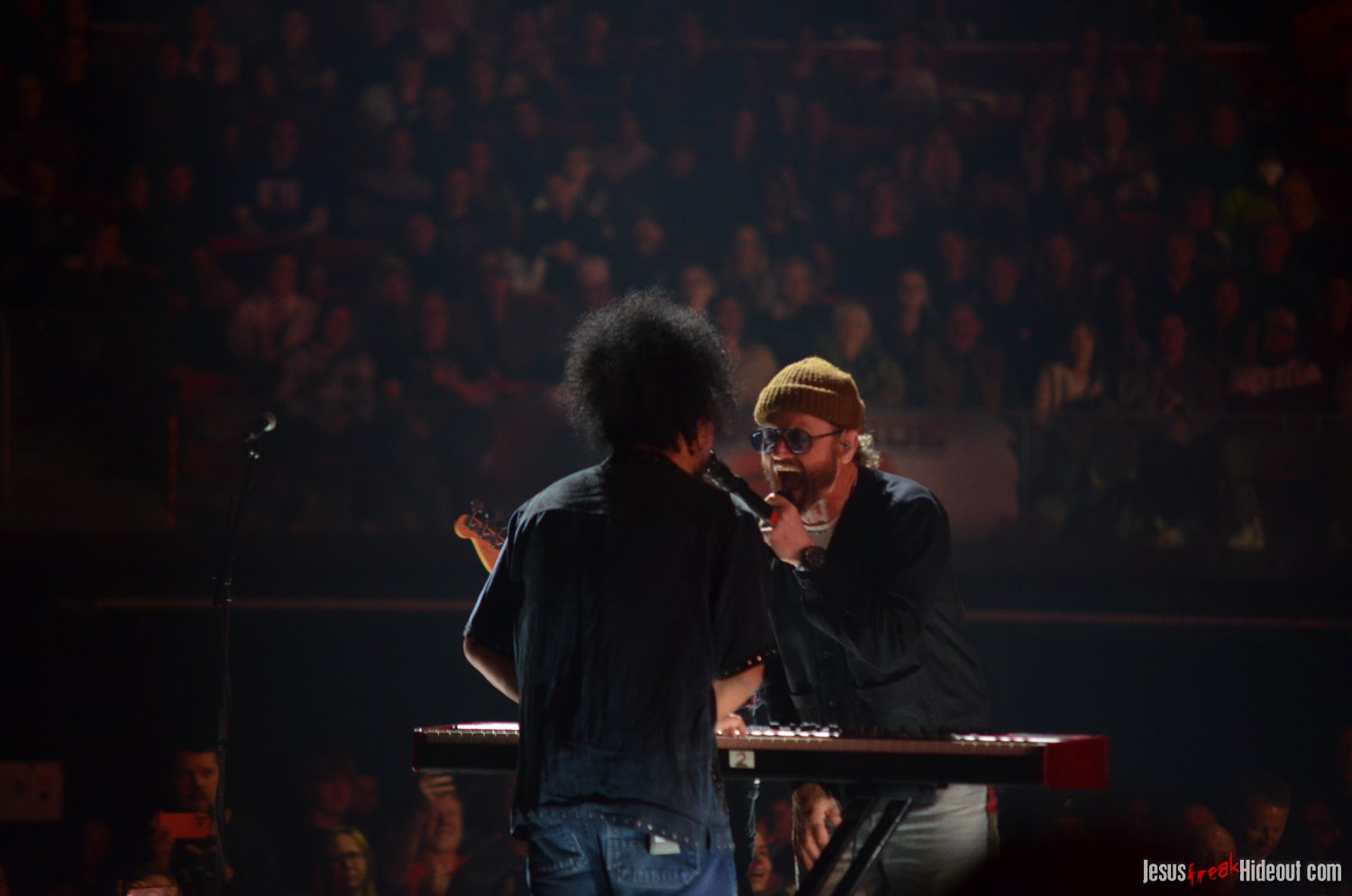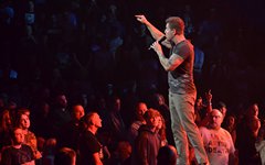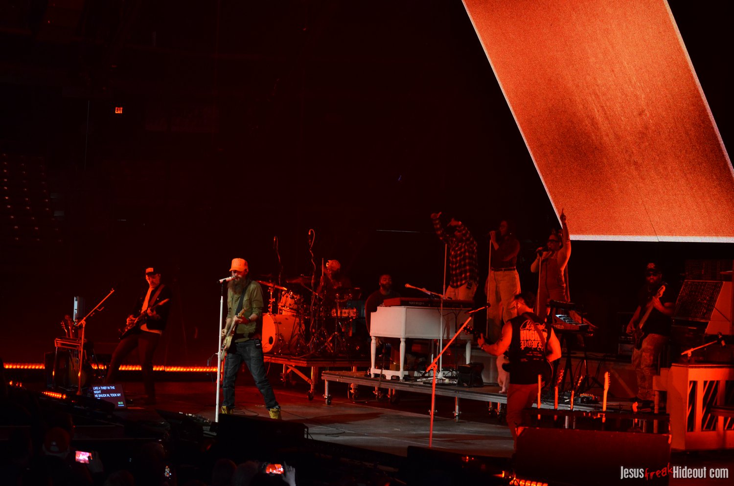 Crowder took the stage next with a massive live band. Two drummers, keys, strings, backup vocalists -- it was a sight. He opened with "Grave Robber" and then continued on with "Milk and Honey" before stopping to greet the audience and then perform "It Really Is Amazing Grace." The stage also displayed a massive vertical screen hanging behind the band, with two more horizontal screens on either side. I'd never seen anything quite like it. They displayed a mix of live footage throughout the night, random imagery to go along with the song being performed, lyrics to sing along to (at least in Crowder's case), and pieces from music videos. It was almost like someone set a gigantic smartphone behind the artists. While it's nice to get a break from screens at a live show - and it's hard not to focus on screens when they're right in front of you - it was still a neat addition to the stage setup. "It Really Is Amazing Grace" was next, then a mash-up of "Somebody Prayed" and "Goodness of God," before a piano was wheeled over to David and he sat down to share a fun story about how both he and Jeremy Camp can owe meeting their wives to TobyMac (and dc Talk). Coincidentally, "Red Letters" followed - not the dc Talk version - and "Come As You Are." The piano was then wheeled back away and Crowder stood for the rest of his set, performing one of my favorites, "Lift Your Head Weary Sinner (Chains)," which he segued into "Crushing Snakes." Crowder then closed with the worshipful hit, "Good God Almighty," bringing his live and boisterous church service to a close around 8:29pm.