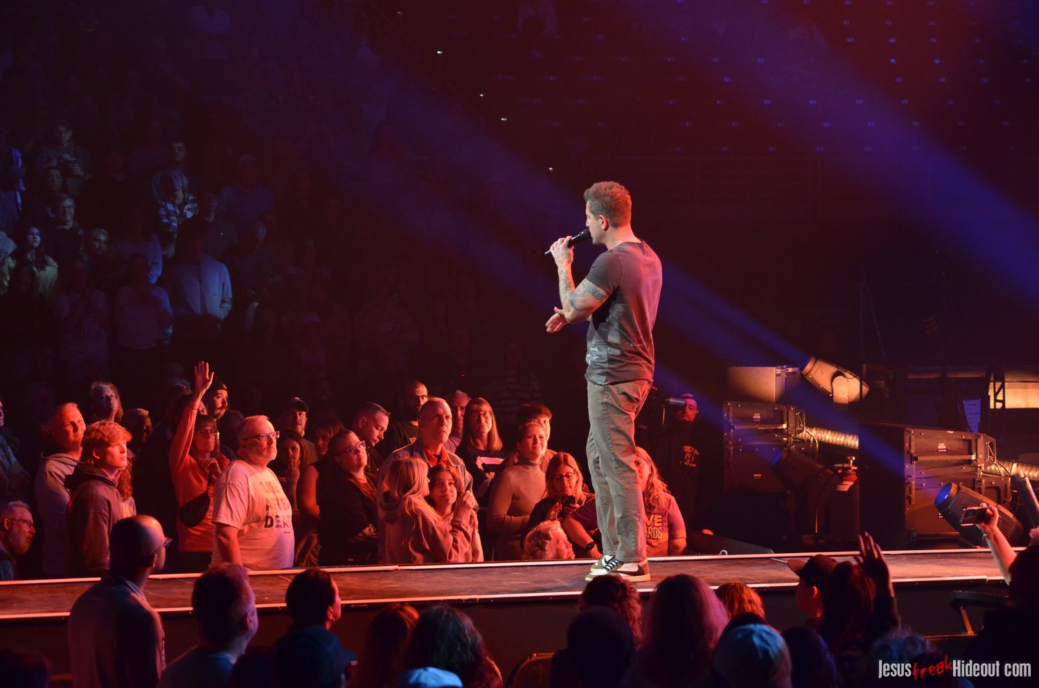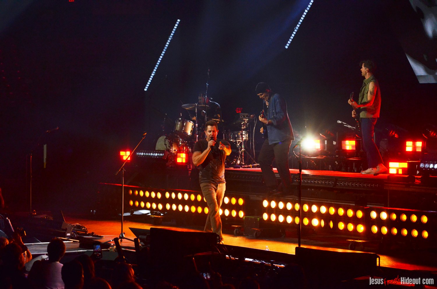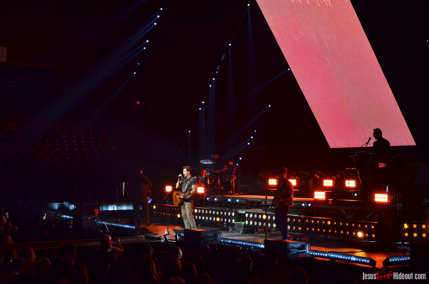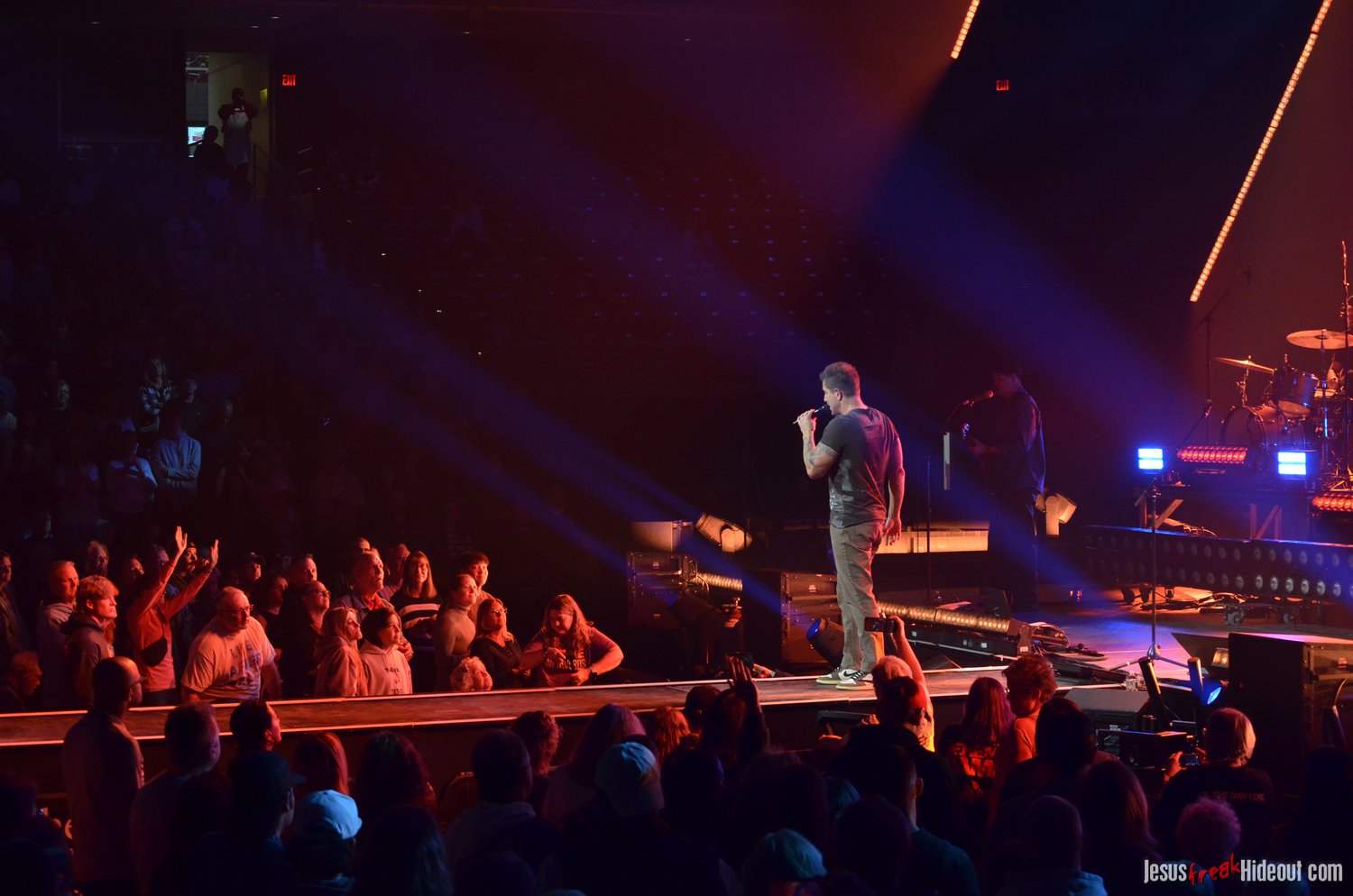 The stage layout for the tour is pretty impressive. One look at it and you instantly can understand why there are three full size tractor trailers parked out front. It's massive. The front of the stage expanded to include a full-size cross-shaped stage extension. I've found cross-shaped stages to seem a little tacky at worship events and such, but in this context, it somehow feels less gaudy and more practical - especially in how it would be used during the night. Jeremy used the stage about mid-way to get closer to the audience, and it worked well for his set. He had a full band and, while we were there, performed hits like "Keep Me in the Moment," "Getting Started" and "No Survivors." I was pleased to see him not being afraid to lean into his rock roots a bit more, too, and it made for a more captivating set. The night supposedly began around 7pm (I wasn't there on time to verify that), but Camp was done with his set around 7:35.