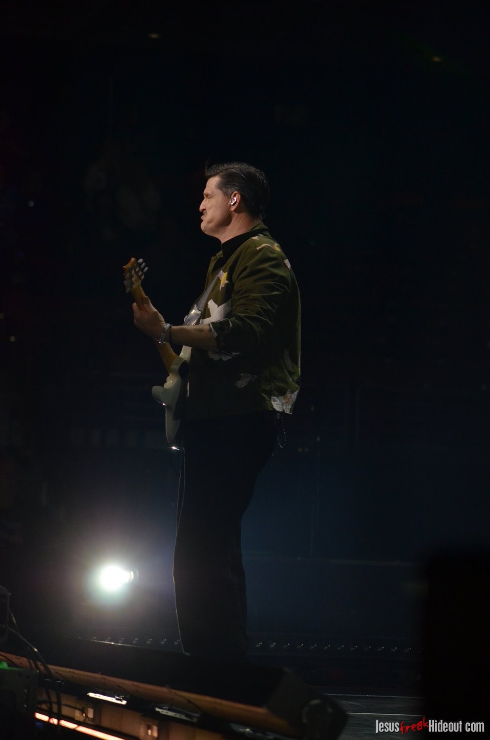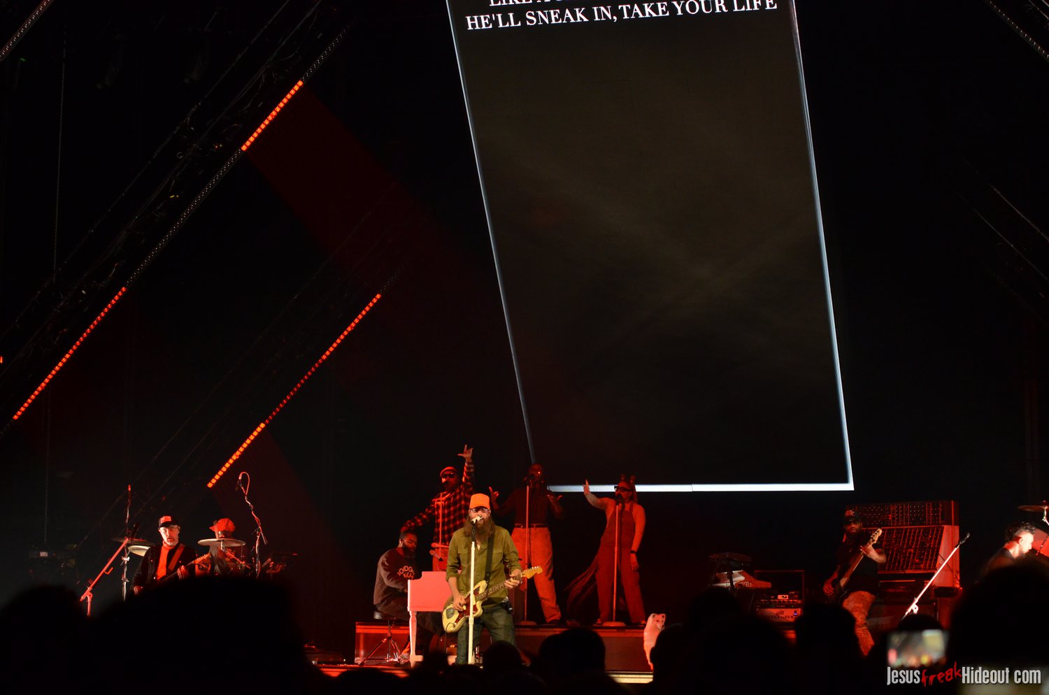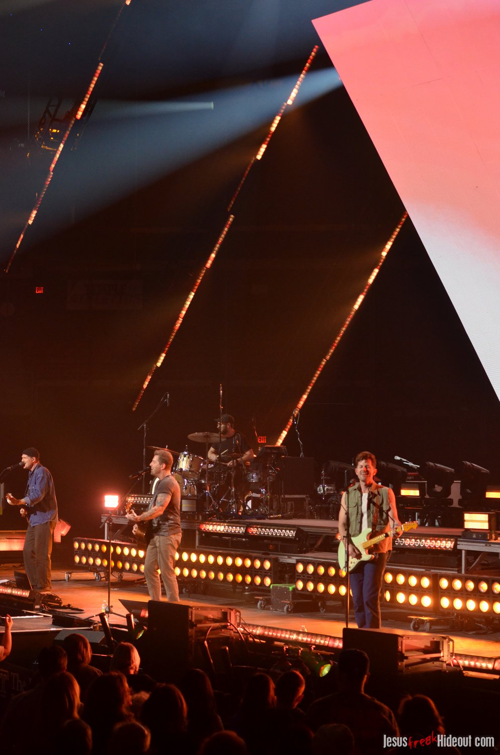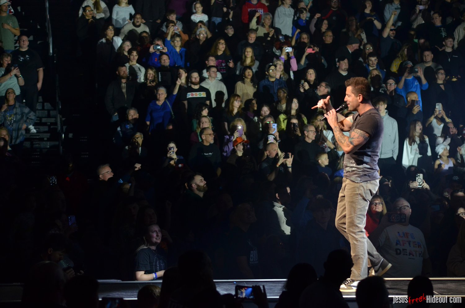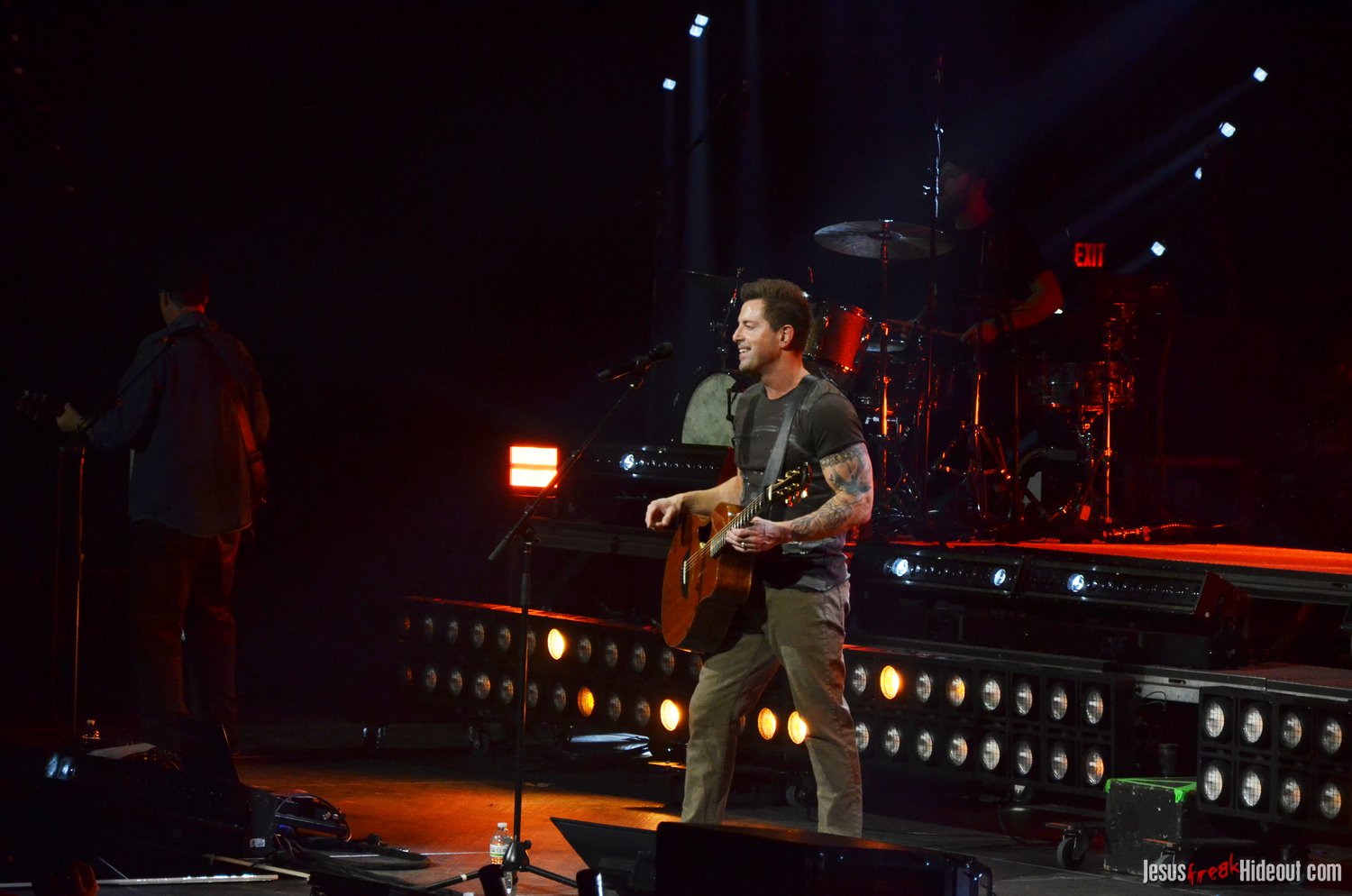 The stage layout for the tour is pretty impressive. One look at it and you instantly can understand why there are three full size tractor trailers parked out front. It's massive. The front of the stage expanded to include a full-size cross-shaped stage extension. I've found cross-shaped stages to seem a little tacky at worship events and such, but in this context, it somehow feels less gaudy and more practical - especially in how it would be used during the night. Jeremy used the stage about mid-way to get closer to the audience, and it worked well for his set. He had a full band and, while we were there, performed hits like "Keep Me in the Moment," "Getting Started" and "No Survivors." I was pleased to see him not being afraid to lean into his rock roots a bit more, too, and it made for a more captivating set. The night supposedly began around 7pm (I wasn't there on time to verify that), but Camp was done with his set around 7:35.
