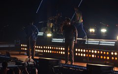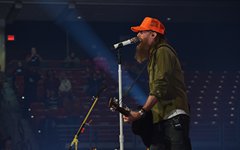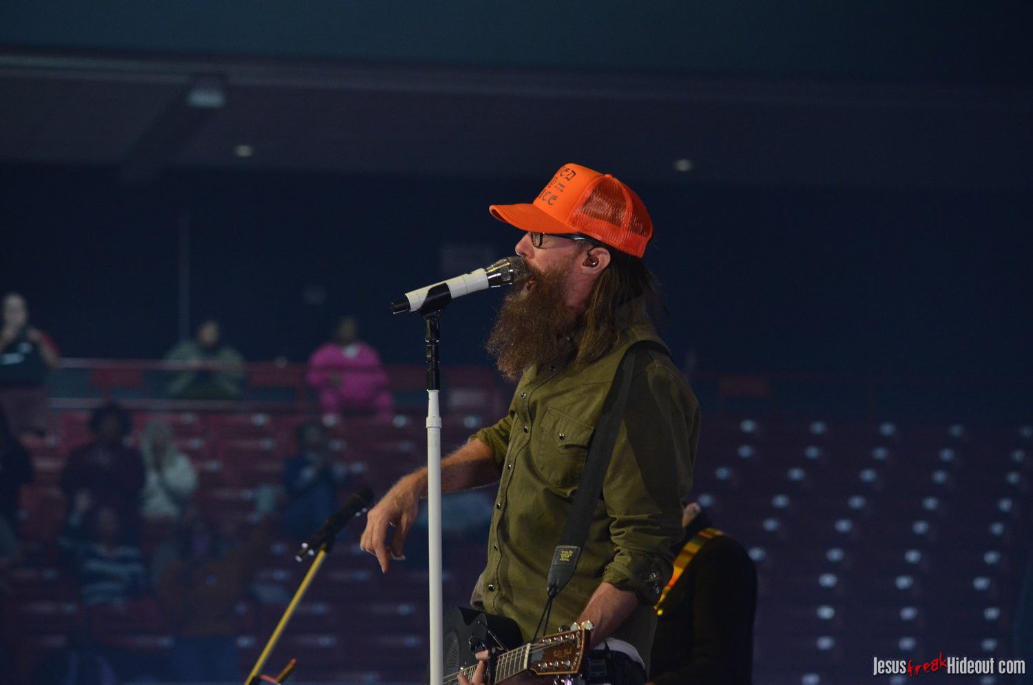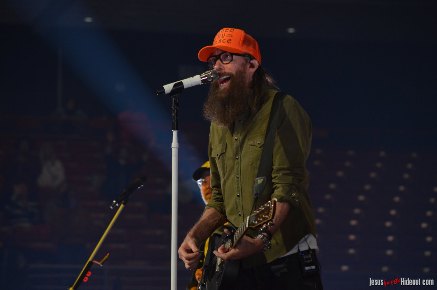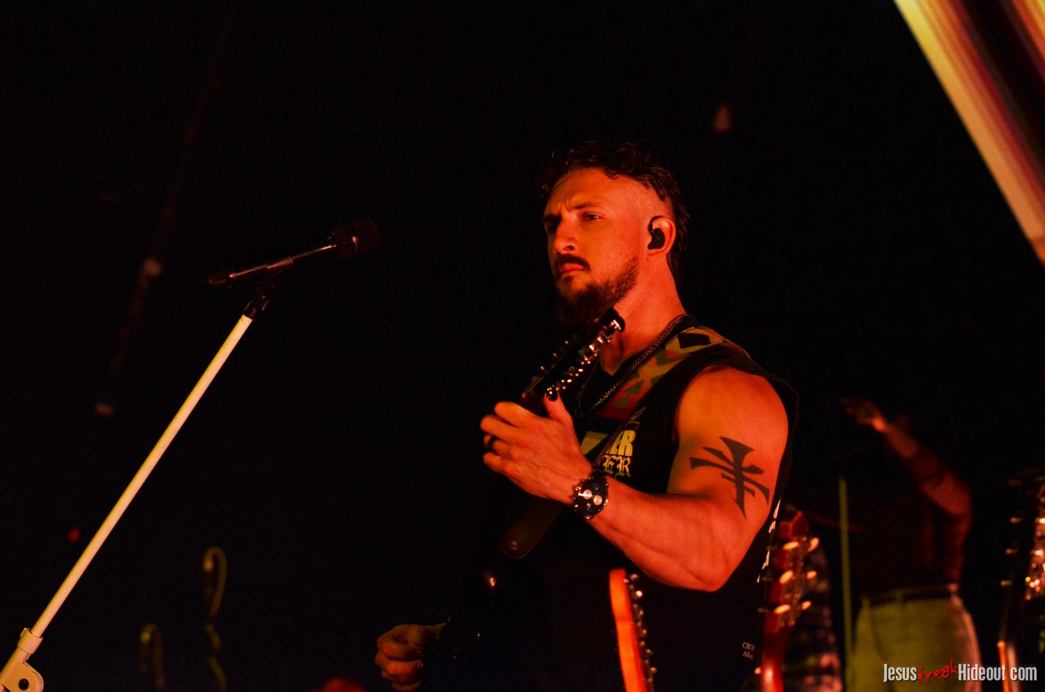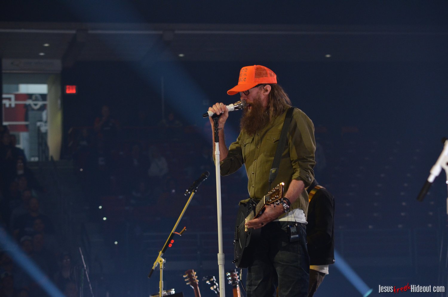 The stage layout for the tour is pretty impressive. One look at it and you instantly can understand why there are three full size tractor trailers parked out front. It's massive. The front of the stage expanded to include a full-size cross-shaped stage extension. I've found cross-shaped stages to seem a little tacky at worship events and such, but in this context, it somehow feels less gaudy and more practical - especially in how it would be used during the night. Jeremy used the stage about mid-way to get closer to the audience, and it worked well for his set. He had a full band and, while we were there, performed hits like "Keep Me in the Moment," "Getting Started" and "No Survivors." I was pleased to see him not being afraid to lean into his rock roots a bit more, too, and it made for a more captivating set. The night supposedly began around 7pm (I wasn't there on time to verify that), but Camp was done with his set around 7:35.