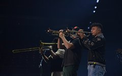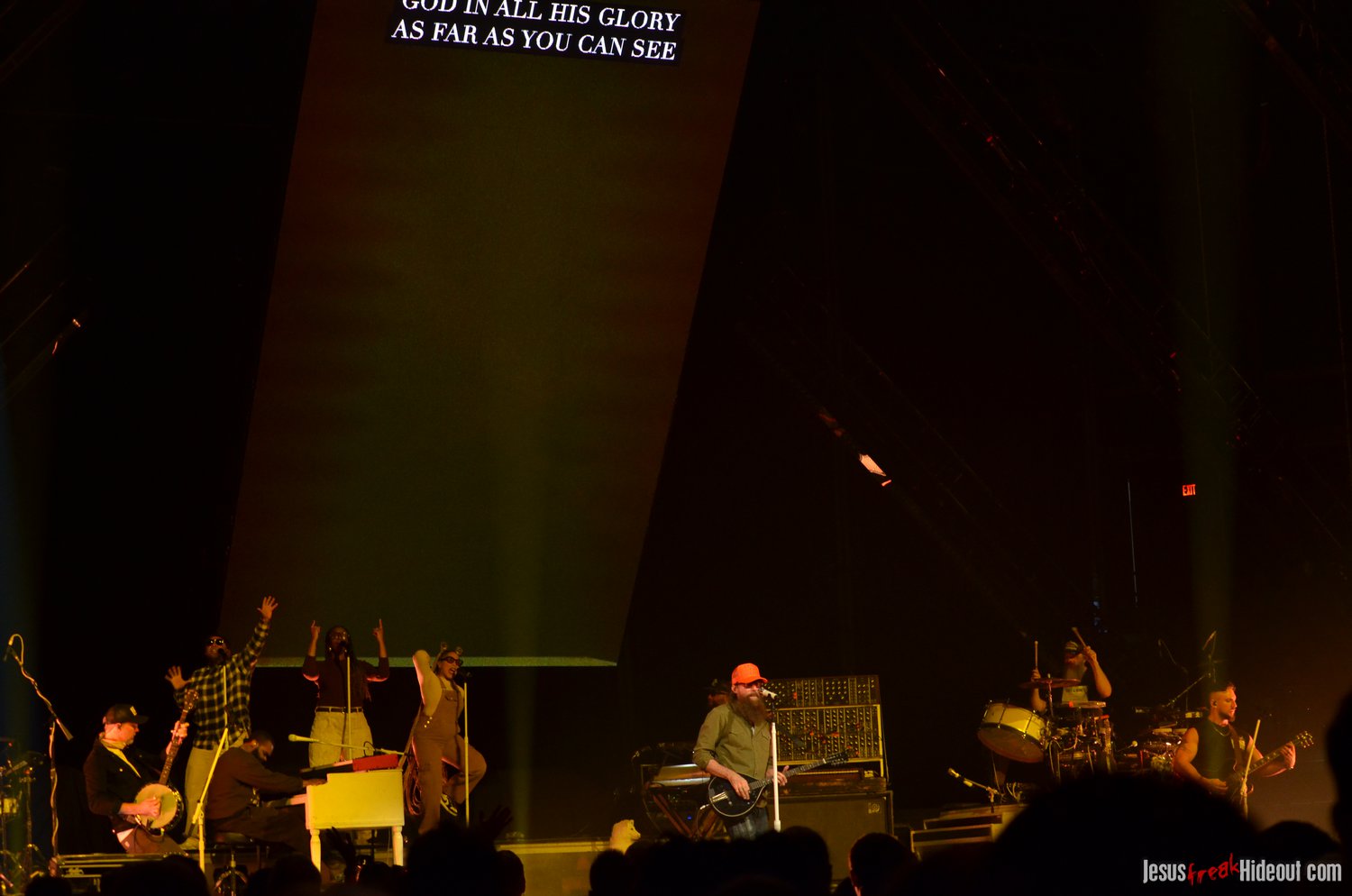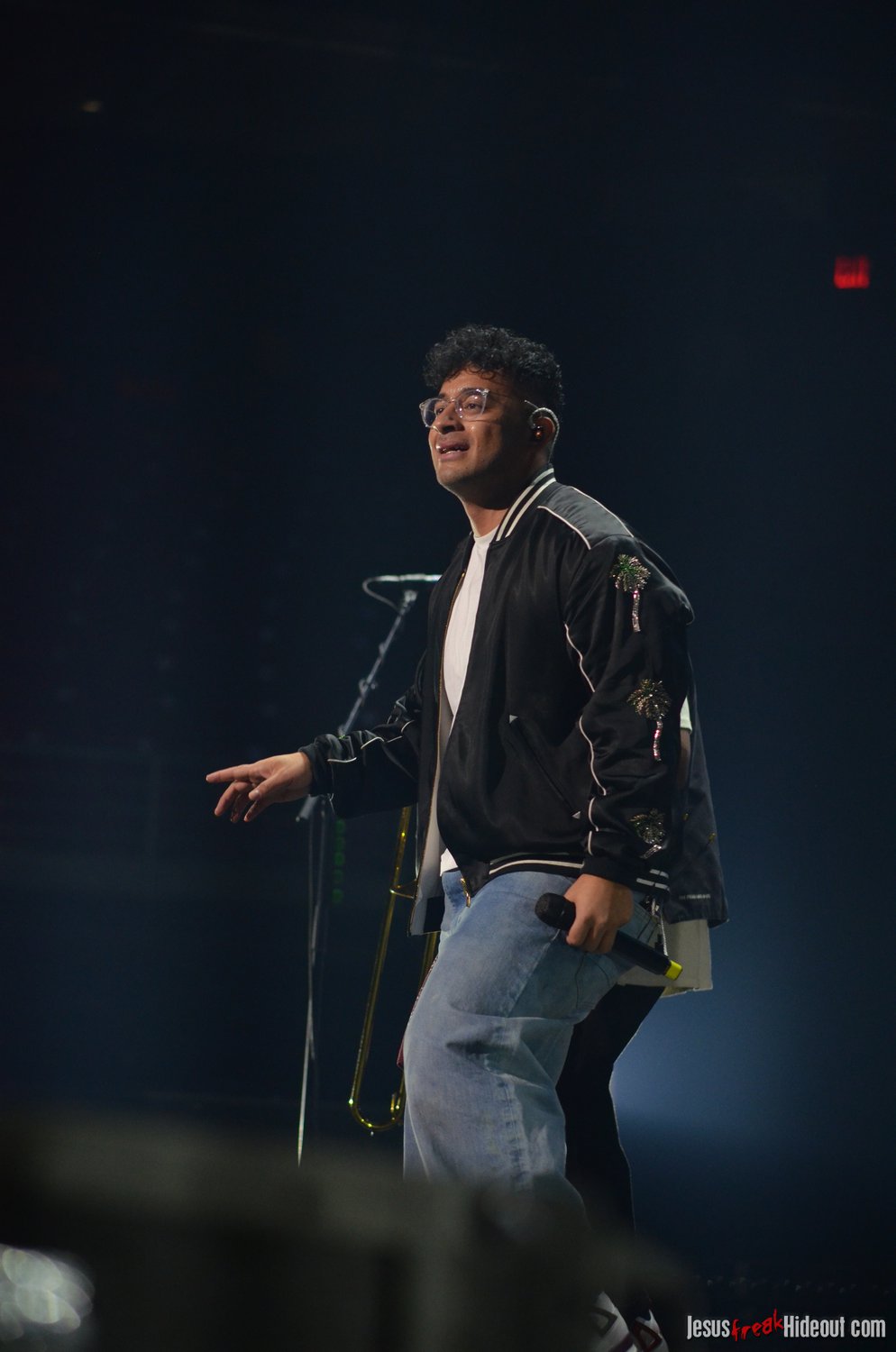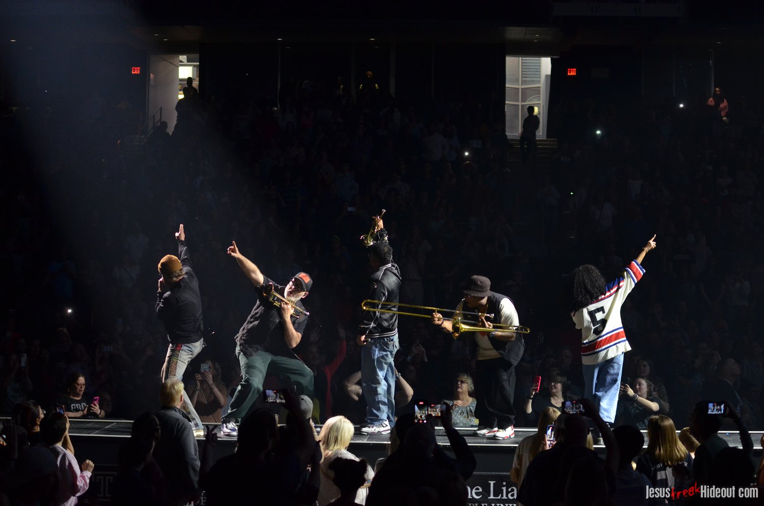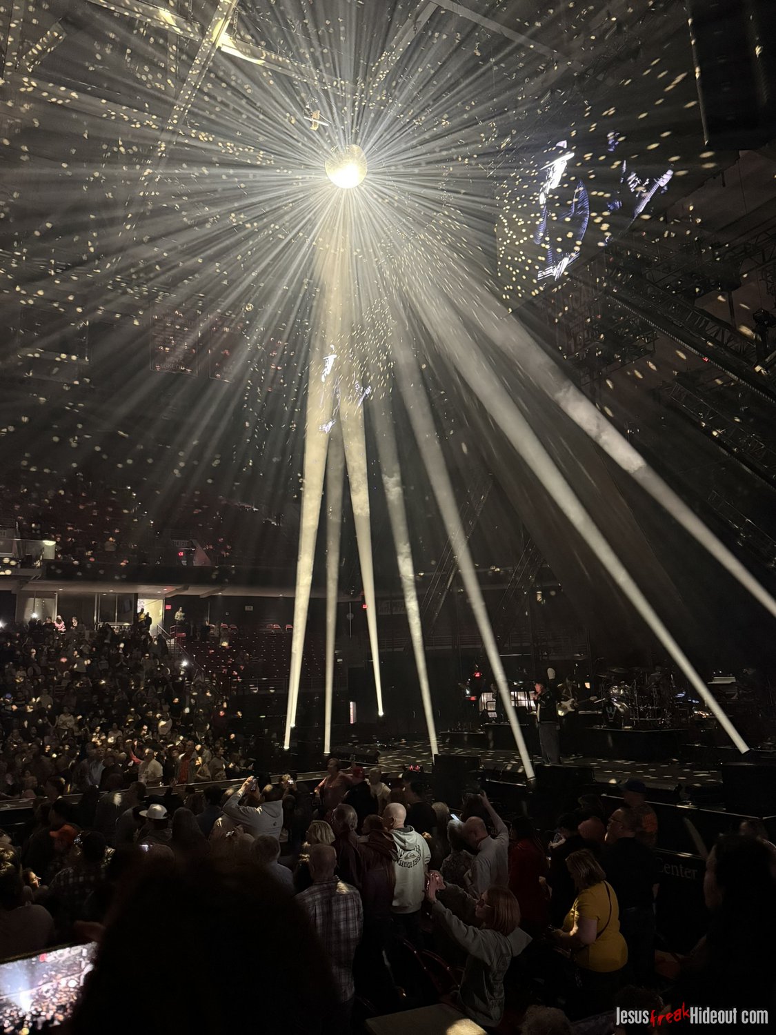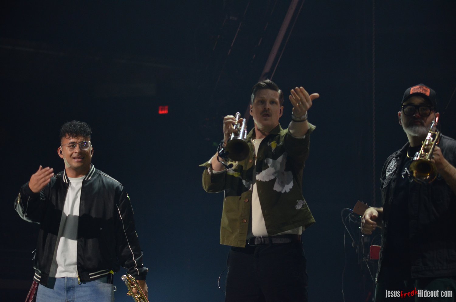 So, around 9pm, TobyMac and the Diverse City band took the stage. I later realized it's been about 7 or 8 years since I last saw TobyMac perform, but I was still a little surprised to see so many new faces in the Diverse City band. It kind of felt like a "Next Generation" deal, but - as you can always expect - Toby knows talent and knows how to surround himself with some of the best in the biz, so you can expect him to have an entourage with him that impresses. I was surprised to hear him open with "Light Shines Bright" from This is Not a Test, which he immediately followed with "Hello Future" from The Elements. They seemed a little like deep cuts to me, but they were solid openers. Toby wasted no time dancing with his bandmates and kicking up the energy. "Everything" was next - complete with featured horn and keytar accompaniment, and then he busted out the smash hit "I Just Need U." "Heaven on My Mind," followed, and Toby made use of the screens to insert a pre-recorded duet with Forrest Frank - a little trick he'd utilize again later. He then walked out on the catwalk and shared a bit about his testimony before playing "Love Broke Thru" and "Help is on the Way." The worshipful "Cornerstone" was next, and Toby paused to share a word on Psalm 9:9-10 (MSG), and then continue the song, adding a pre-recorded guest spot by Zach Williams and concluding the song with a chorus of "Lose My Soul." Streamers burst into the air for "The Goodness," and then Toby and his bandmates marched down the center stage to "Move (Keep Walkin')."