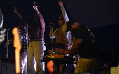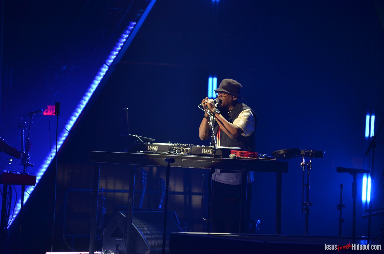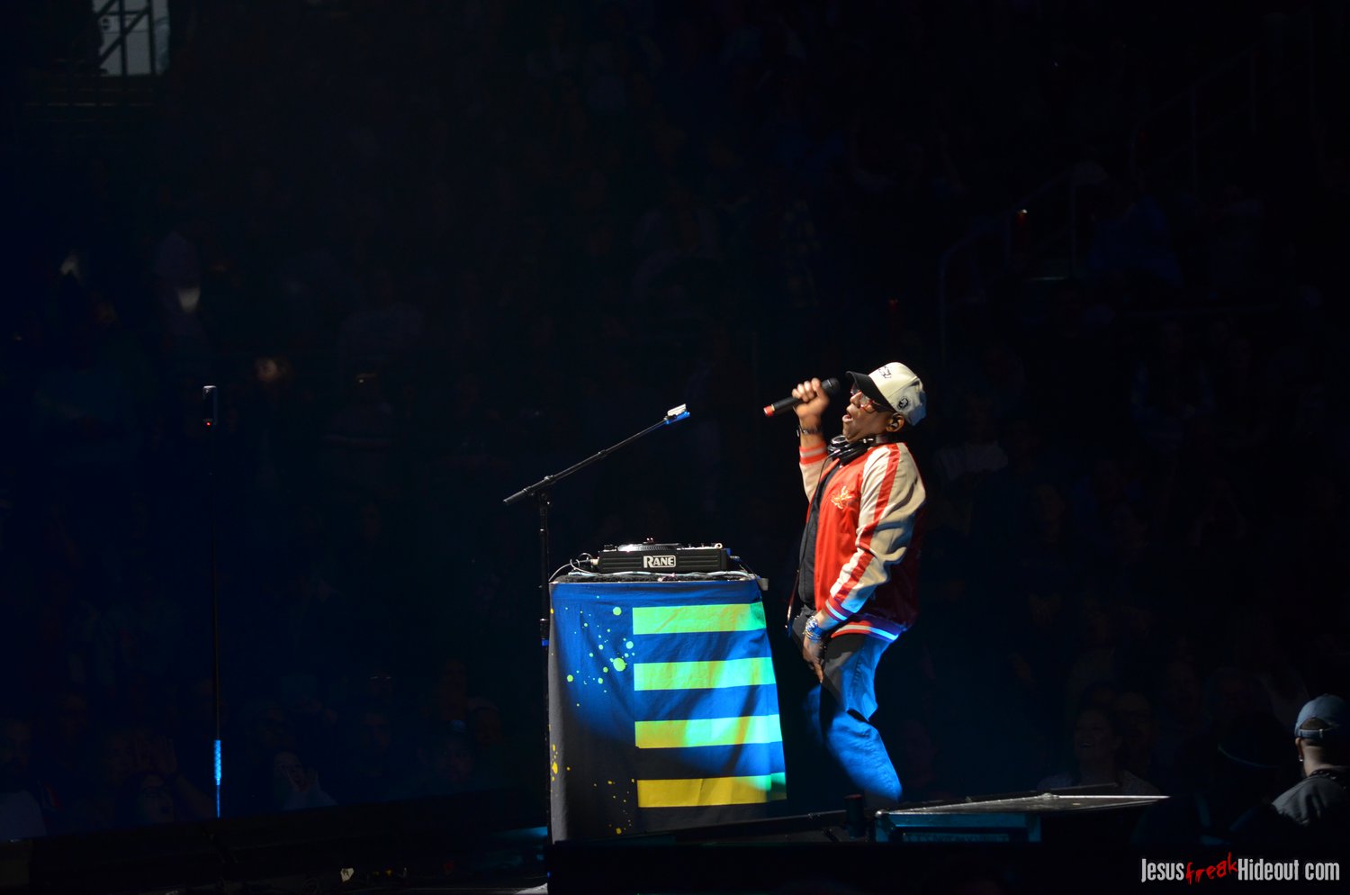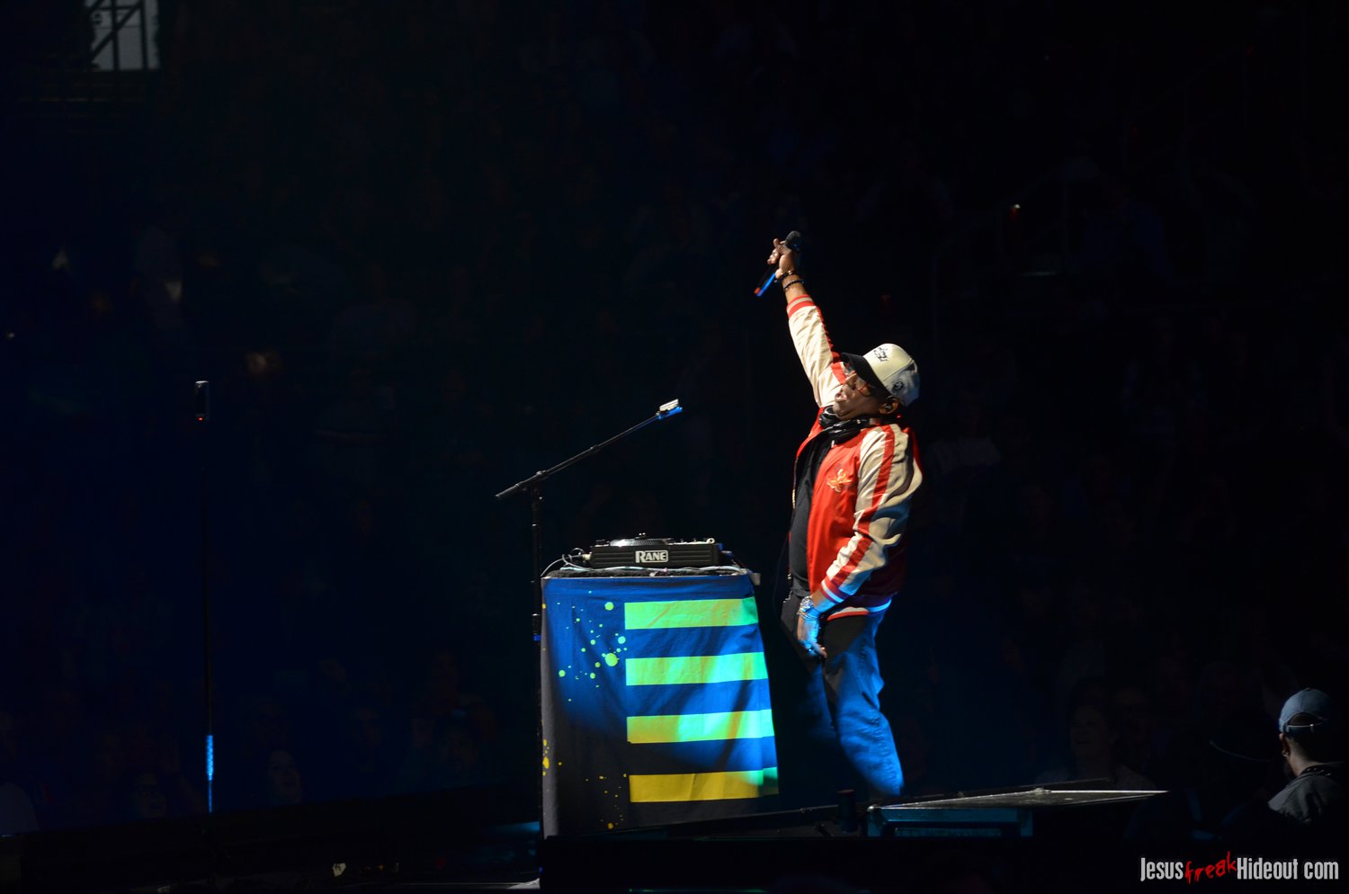 When Jeremy left the stage, DJ Maj - from TobyMac's Diverse City entourage - showed up on the crossbeam part of the cross-shaped stage to perform a bit of a "dance party." It was a fun little set where Maj mixed popular mainstream and Christian pop hits together to get the crowd moving and on their feet. Considering how set changes can feel long and like mood resets, it was a really effective way to keep the party going as we waited for the next act. DJ Maj incorporated such notable tracks like "God is Good All the Time," "Feelin' So Fly," "Can't Stop Till You Get Enough," "Edge of My Seat," "Everybody (Backstreet's Back)," "Jump Around," "Ice Ice Baby," "Somebody's Watching Me," and "Can't Touch This," among others.