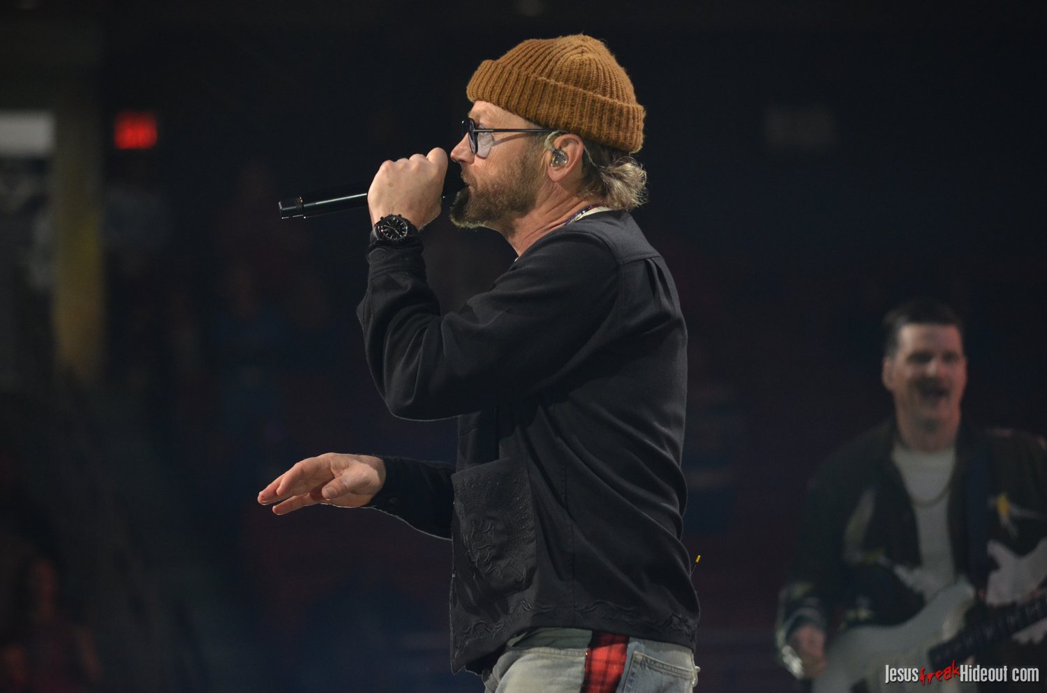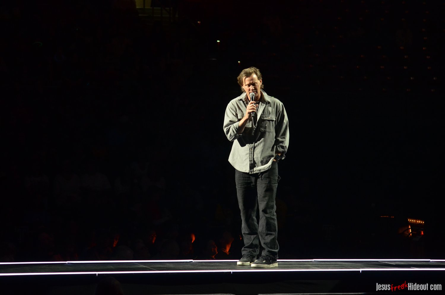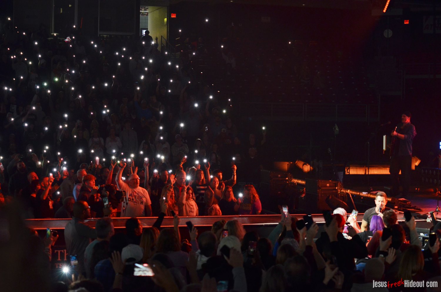 To my surprise, when the stage went dark, a spotlight illuminated a lone guest speaker, none other than Jason Roy of Building 429. Jason was there to promote Food for the Hungry, encouraging the audience to sponsor a child to be the hands and feet of Jesus. He quoted Psalm 121:1, shared about his own experiences sponsoring through Food for the Hungry, and then left the stage around 8:48pm, saying Toby would be out in about 10 minutes (giving people a chance to hit the restrooms, check out the merch tables, or grab some food).