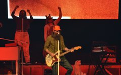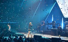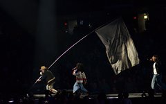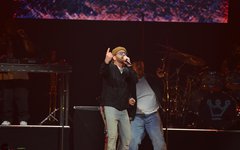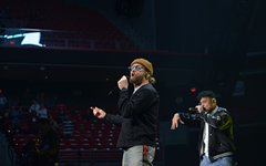 At this point, Toby paused again to share from his heart, saying how, about 6 years ago, he decided to try reading the Bible from start to finish, and that, two months into that venture, he lost his oldest son, Truett. He talked about the importance of having a relationship with God, and then sung the worshipful "Faithfully." "God Did It," from his latest record Heaven on My Mind, followed, along with "a lil Church (nobody’s too lost)" from the same album. The full band migrated to the center of the cross stage for the next portion, and Toby announced the challenge to perform a medley of 5 TobyMac songs in 5 minutes - complete with a countdown. As he moved through the songs, the jumbo screen showed animations of the singles' album covers coming into focus. With Philadelphia native Hollyn as a special guest (who is also signed to his record label, Gotee Records), the band performed "Backseat Driver," "Funky Jesus Music," "Diverse City," "Me Without You" and "Feel It." The only one who had remained on the main stage was DJ Maj, and he launched into another party medley as the band made their way back to their places (but not before jumping around on the cross stage). He played a mix of "Sweet Caroline," "September," "Ooh Ahh" by Grits, and dc Talk's "Jesus Freak" - complete with Toby returning to the microphone (after a wardrobe change) for his signature rap solo. Serving as a kind of encore, TobyMac and the Diverse City band launched into "Can't Stop Me," "Til the Day I Die" - complete with Toby waving a gigantic flag, "Promised Land," and closing with "Nothin' Sweeter."