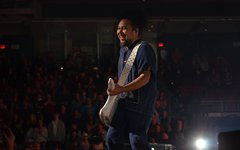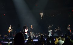 Anyone married and/or with kids knows how hard it can be to arrive anywhere on time. So, when it came to getting my family out the door to the center of Philadelphia on a Saturday evening for an event, we discovered it to be a challenge to get on the road on time. I'd never been to The Liacouras Center, which is part of Temple University, so I wasn't quite sure what to expect. The Center is right in downtown Philadelphia (at least - that's how I'd describe it), and parking is definitely tricky. There's a parking deck across the street from the entrance to the venue, and event parking was $27 for the night. There was a lot of traffic around getting to the parking deck, and then threading through the lane climbing up the structure. By the time we parked, took the elevator to the bottom, got through security (which only accepted clear bags - thank God for photo passes), opener Jeremy Camp had already begun.