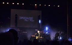 As expected, "Speechless" was next, and then Steven paused to introduce his tight-knit band and the talented La Vie Quartet. After that, he continued to play through the album, one encouraging rocker and inspirational ballad after another. Before "Fingerprints of God," he talked briefly about how the song was written to encourage his daughter Emily when she was little, and how it was a response to a time when she'd struggled with feeling ugly and inadequate. After "The Invitation," Steven joked that this marked the end of "Side A" for the album, and talked about how it was more recently pressed on vinyl for the first time. He then mentioned how, if you flipped the vinyl over, you'd hear this - and after a needle-drop sound, he launched into the boisterous "Whatever."