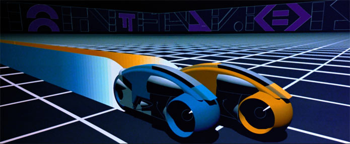 Original DVD Features - There are a slew of features from the original TRON DVD release, including "Development," "Digital Imagery," "The Making of TRON," "Music," "Publicity," "Deleted Scenes," "Design," "Storyboarding," and "Galleries." The downside to these is they're all in standard Definition and don't really look that great blown up on a nice-sized HD screen. The Deleted Scenes involve a deleted "love scene" between Tron and Yori. It's bizarre and probably a smart omission from the final film. The Making-of feature is just under an hour and a half and a pretty extensive behind-the-scenes look at the movie. I would have liked to have seen something like this made for Legacy.