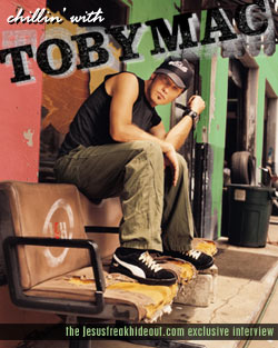Toby: There are some people that I really wanted to work on this record with. One of these days, I really want to make a real sort of avant-garde record and I want to work with people that I really respect but probably wouldn't fit on my type of record right now. I would love to have Leigh Nash sing on a song, but just doing something really unique, y'know what I mean? Between hip-hop and what she does. Maybe just like a cello and a small kit, something like that. Something real left. I want to make a record like that one day. And I will, it's just hard because I want to make a record every three years and I'm doing bigger tours like this. I want to get back to doing a small thing, do small shows. Have like a beat box, cello, acoustic and a rhyme and a singer. It think it'd be cool. John: Anybody else? I got to work with Paul Meany - Earthsuit is one of my favorite groups. We did "Phenomenon" together. [Jon] Foreman and I were working on a song together but didn't get it done. I just sent him a track that I was working on that I had a verse for, and he was going to help me with some stuff but we just didn't have time. On Momentum I did a track with Relient K, but it just didn't make the record. It was hot. It sounded really cool. I think Ben Folds is incredible. I like his songs, the way it sounds, I just really respect the way he writes. But I'd say my number one would really be Lauryn Hill. I love her voice. I got about as close as I could find to her with Joanna [Valencia] on my records. *laughs* Cause she sounds a lot like her.