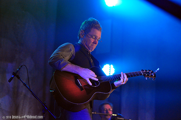 When Caleb finished, there was a brief set change and Steven Curtis hit the stage to perform his own music. Opening with one of his biggest hits to date, "Dive," the show was off to a grand beginning. With such a full catalog of music to choose from, Steven did a good job selecting a tight set list. However, he did take requests from fans via his website for what songs they'd like to hear on this tour, so that would probably best explain the solid choice of songs. But after "Dive," SCC and band (which included his sons Will Franklin and Caleb on drums and guitar, respectively) moved into "Let Us Pray" from his Signs Of Life record, and then returned to Speechless for the album's title track. Steven Curtis then dipped into the SCC archives for the fan favorite "For the Sake of the Call" and then performed "Free" and "More To This Life" as sort of a medley. After swapping guitars, Steven paused to tell the story of walking in London and being inspired to write the song "Yours." Before finishing the song, he told the story about writing a new verse after the loss of Maria, and closed the song with the additional verse. It added further depth to the performance for Steven to share so openly about the struggles and pain caused by his daughter's loss. It's that kind of openness that the Chapmans have always had that has made it so easy to be drawn into their music and ministry. Following a brief prayer, Steven then performed the heart-wrenching single "Heaven Is The Face," one of the first songs that debuted from his latest release, Beauty Will Rise, that was written out of the dark times following Maria's accident.
