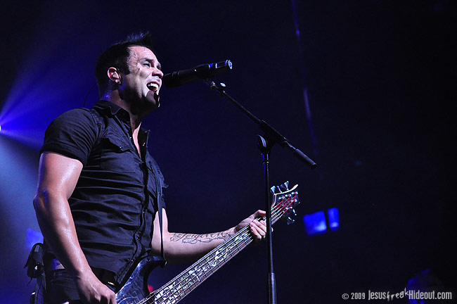 I first saw Skillet perform live at Creation 1998. Back then, the guys were merely a three-piece and still performing cuts off their first two Ardent/Forefront Records releases. John's wife Korey wasn't in the band yet, in fact, all three original members were still performing together. It was a great live, garage rock band show, and it was something you could expect from the band for years to come. Once they stopped rotating guitarists to finally settle on Ben Kasica, and have since this time acquired Jen Ledger on drums, the rock quartet consistently offered a no-frills hard rock performance. I have a fond memory of seeing them performing in support of the Collide record at a small church in 2004. It was a fantastic live show, and they did it with just their songs and stage presence. With The Comatose Tour, they added lifts, pyro, major lighting, and even live stringed instruments for a bigger more theatrical feel. Does it improve their show? The "wow" factor is certainly there, but I may miss a little of the more humble-setting rock show elements as well.
