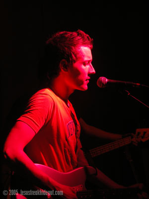 The jam-packed night of rock n roll began with a reuniting of local artists Rainy Day Theory. Since one of the members is now the church's youth pastor and man's the soundboard for the shows, it'd been about four years since he and his band had played live before. Their sound, to be honest, was on the rustier side, but was still a noteworthy opening act. Farewell Flight, another local act, followed, and was probably put on the best set of the locals. Edgier Dreaming Under Mercury followed, turning in a noise fest that the crowd enjoyed slam-dancing and moshing to, but lacked substance to a degree.