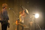 There was a brief, 15 to 20 minute intermission after the film (which was about an hour and 20 minutes), before Switchfoot emerged to play a stripped-down set of music. Fans may have noticed a subtle difference right from the start, however--not including the more acoustic presentation. Keyboardist Jerome Fontamillas was absent and a familiar face from Jerome's personal musical career was standing in his place instead on keys and accordion. 90's CCM fans might have recognized Jyro Xhan from Jerome's former band Mortal (1988-1996, and later in 2002). Jerome was temporarily off the road due to a new baby addition to his family, and Jyro graciously filled in. With bright spotlights bookending the sides of the stage and Jon Foreman taking front and center, the quintet opened with an acoustic rendition of "The Sound," from their album Hello Hurricane. Following "The Sound," the band plugged in a bit for new Fading West song "Who We Are," after a warm greeting to the PA audience from Foreman. Jon expressed that Pennsylvania is one of their favorite places to play since it was one of their first-ever headlining shows they'd ever performed. After the new song, they answered a couple of the questions from Twitter and then presented "Meant To Live" in an entirely acoustic fashion, something Jon said the east coast hasn't heard too often. After that, Foreman said that because of how PA is such a special place to them, they wanted to play a new song for the first time ever live and performed "Ba55" from the new EP/album, Fading West. It sounded great live, and when they were supposed to return to the acoustic format for the next song, Jon insisted that it felt so good to play electric that they wanted to perform "Dark Horses" full-on electric. Jon then introduced the band members and addressed Jerome's absence officially and answered a few more questions--including singing 'happy birthday' to a fan who requested it for a friend. Another Twitter question had asked about how one might be able to get a surfboard personally designed by Jon. As a joke, Foreman went backstage and emerged with half of a broken surfboard--the same board that snapped in two as seen in the Fading West film. He then said he didn't make the board but he did break it, and then set it down in front of Jyro's keyboards for the remainder of the set. They then approached "Dare You To Move" as being acoustic and Jon stopped and asked if, since there was a drummer present (in Chad Butler) if we'd want it played fully electric. The audience was pretty intensely supportive of that notion and the band proceeded to perform it as a full band, "plugged in." Jon ventured out into the audience to sing along with fans before returning to the stage and ending the first part of the set. They then waved goodbye and walked off. Six songs seemed like an unusually short set, especially for Switchfoot, so it was no surprise that they soon came back out for an encore.