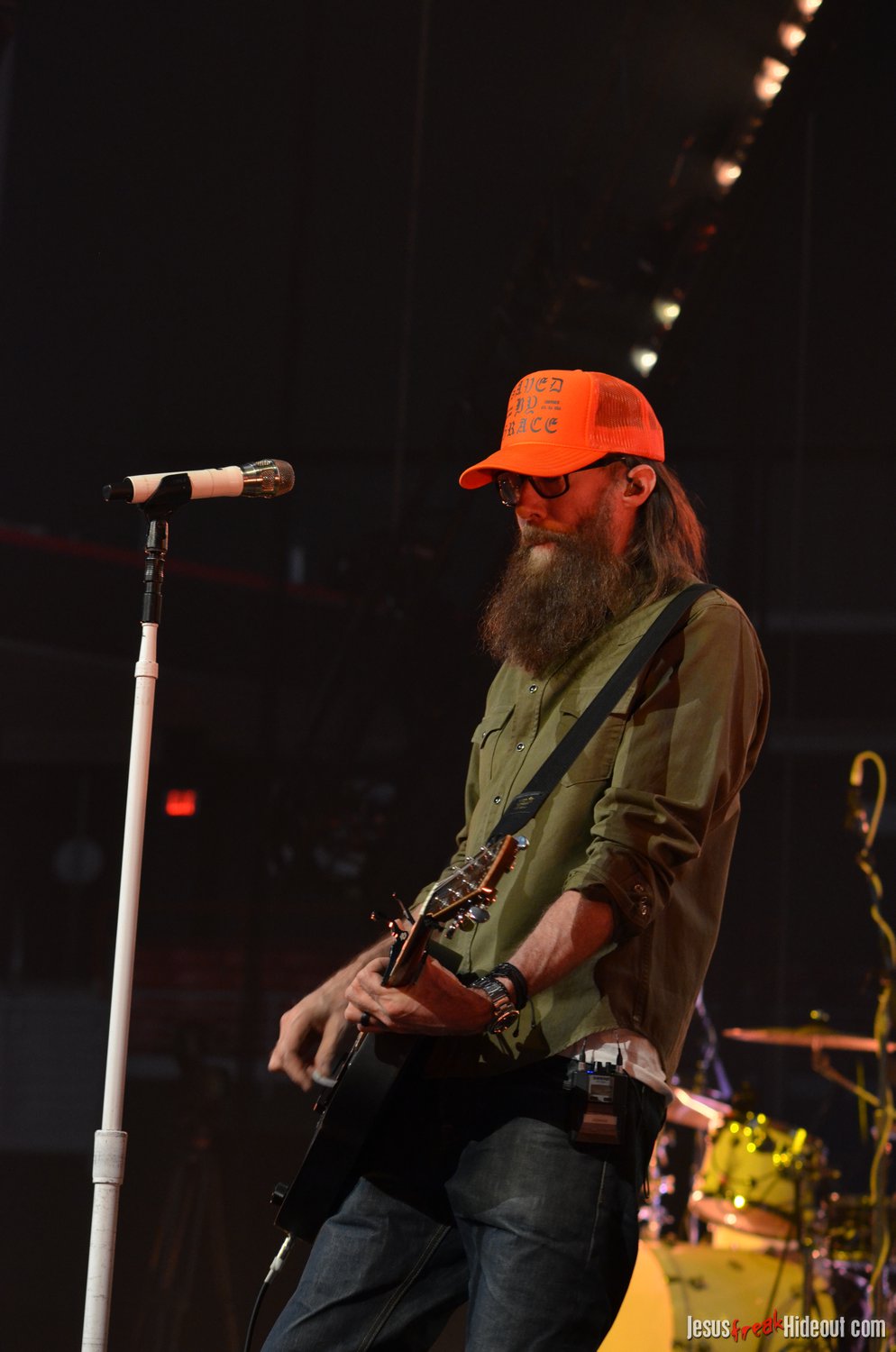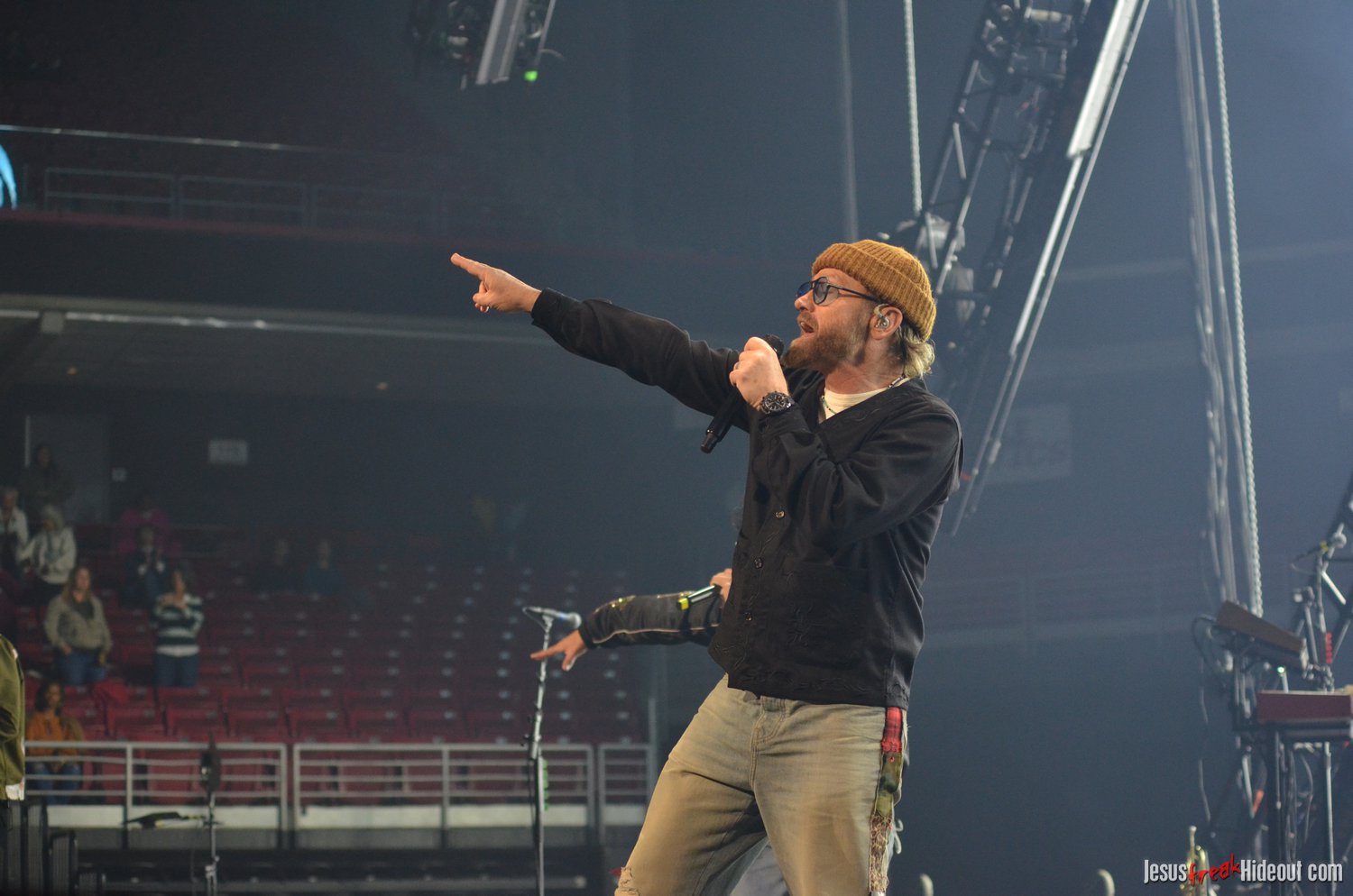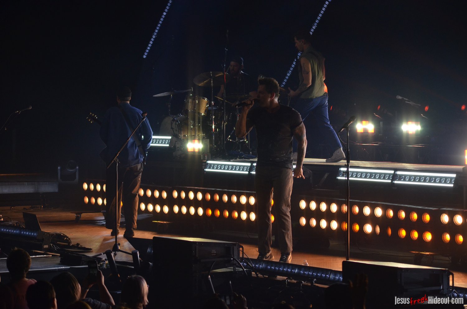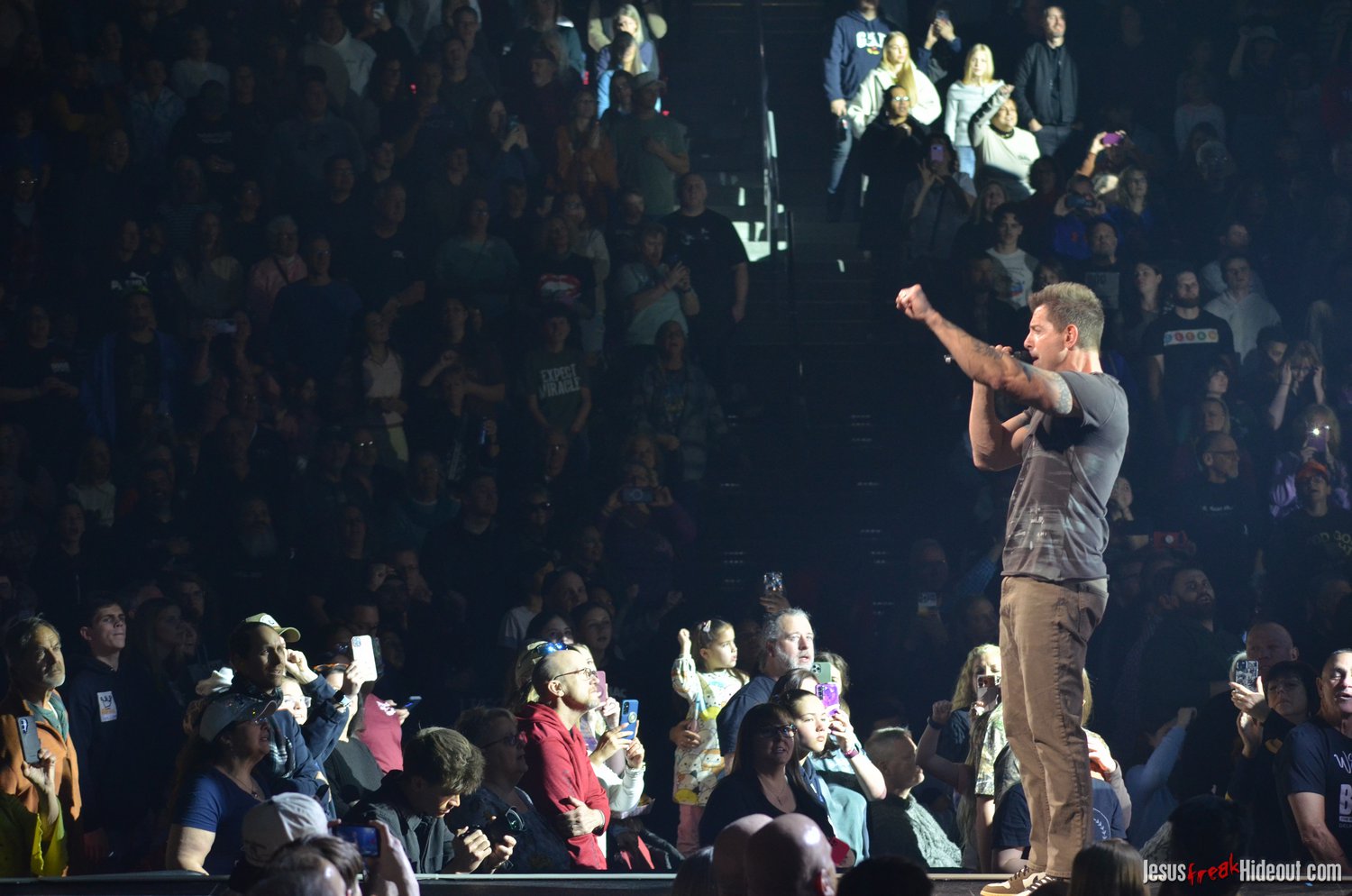 The stage layout for the tour is pretty impressive. One look at it and you instantly can understand why there are three full size tractor trailers parked out front. It's massive. The front of the stage expanded to include a full-size cross-shaped stage extension. I've found cross-shaped stages to seem a little tacky at worship events and such, but in this context, it somehow feels less gaudy and more practical - especially in how it would be used during the night. Jeremy used the stage about mid-way to get closer to the audience, and it worked well for his set. He had a full band and, while we were there, performed hits like "Keep Me in the Moment," "Getting Started" and "No Survivors." I was pleased to see him not being afraid to lean into his rock roots a bit more, too, and it made for a more captivating set. The night supposedly began around 7pm (I wasn't there on time to verify that), but Camp was done with his set around 7:35.