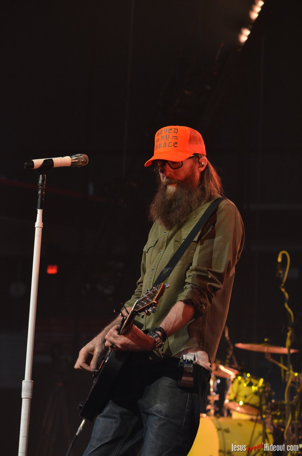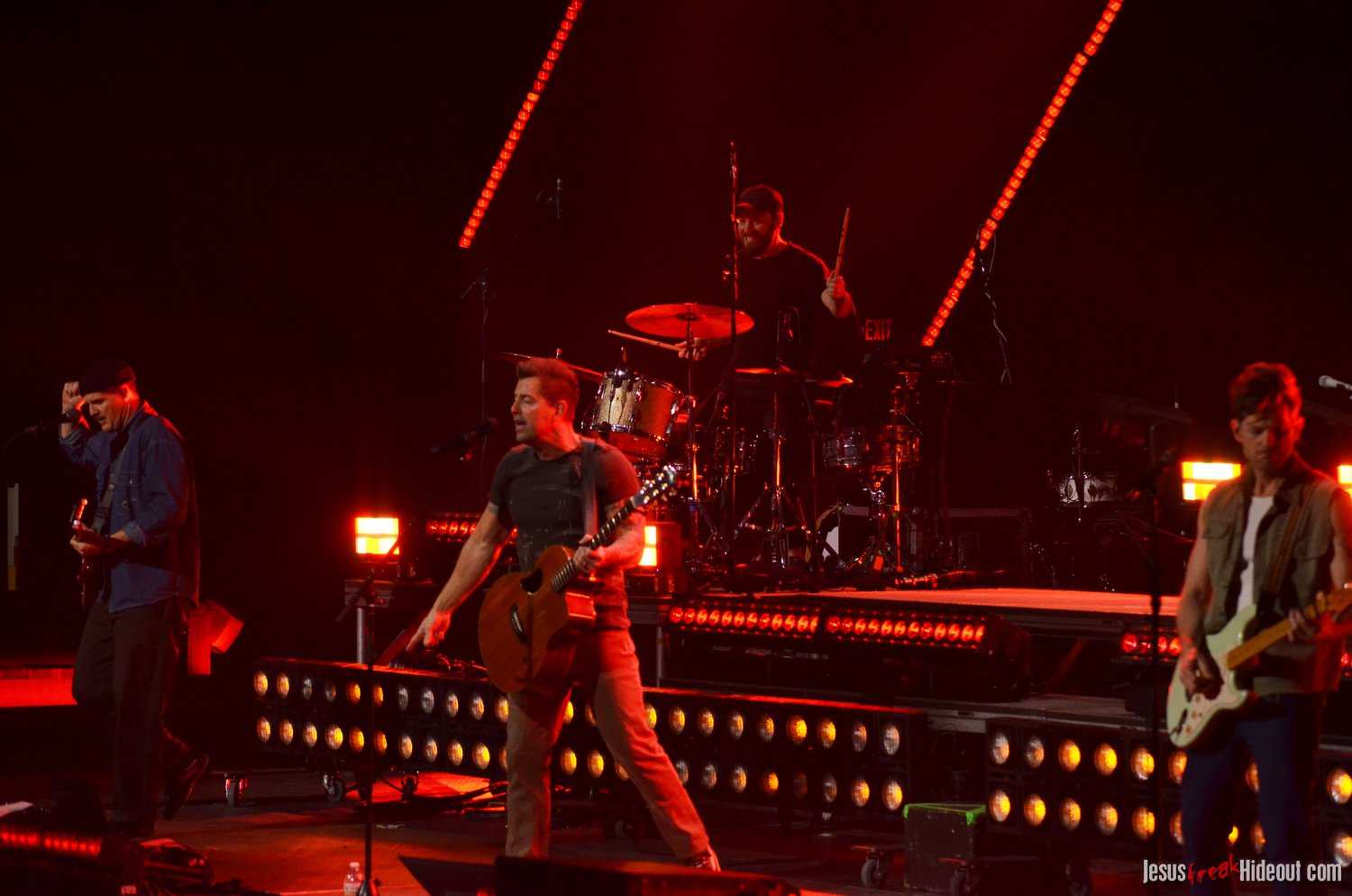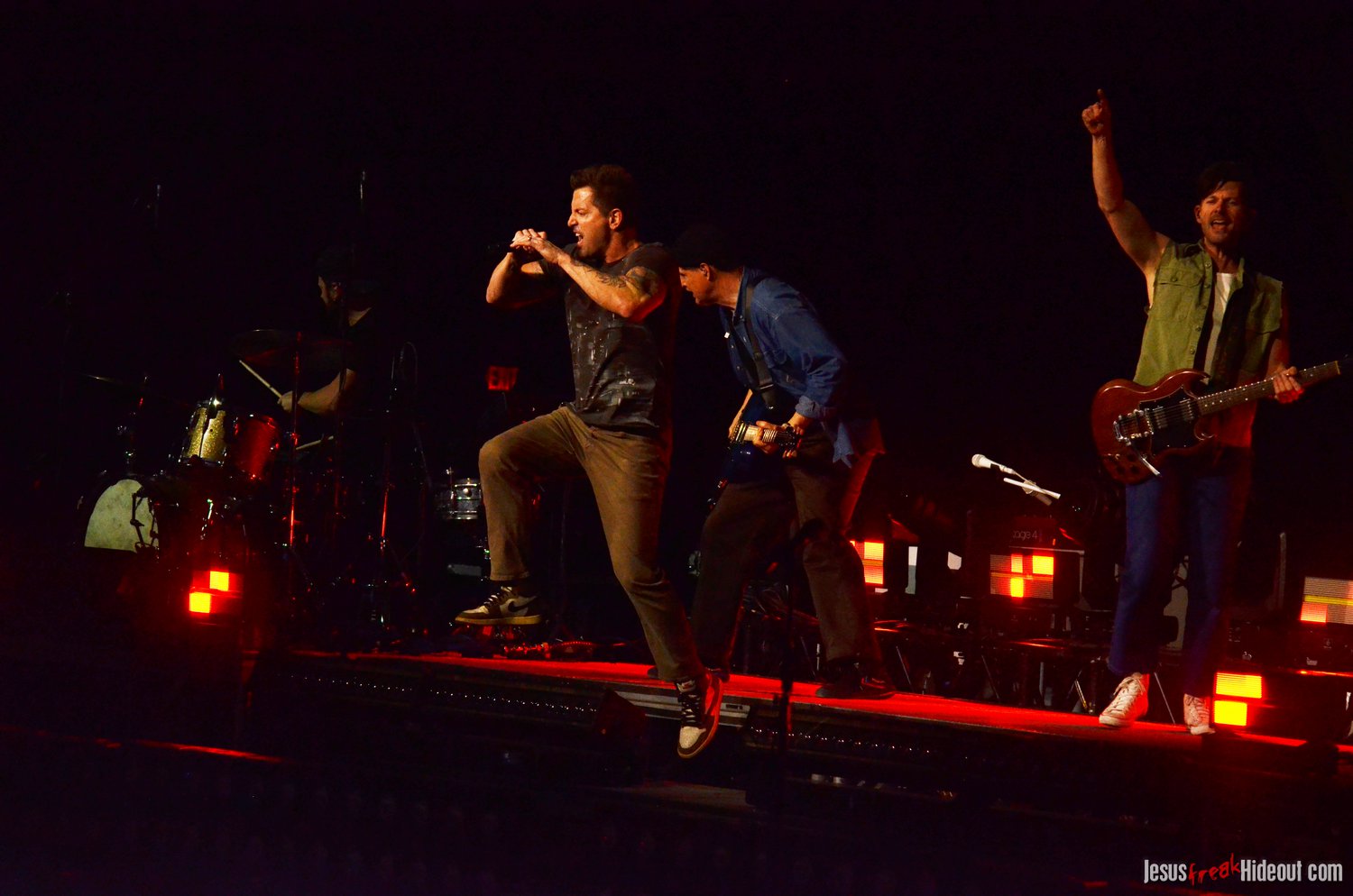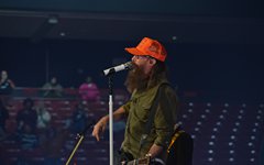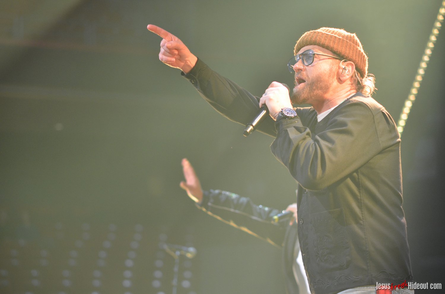The stage layout for the tour is pretty impressive. One look at it and you instantly can understand why there are three full size tractor trailers parked out front. It's massive. The front of the stage expanded to include a full-size cross-shaped stage extension. I've found cross-shaped stages to seem a little tacky at worship events and such, but in this context, it somehow feels less gaudy and more practical - especially in how it would be used during the night. Jeremy used the stage about mid-way to get closer to the audience, and it worked well for his set. He had a full band and, while we were there, performed hits like "Keep Me in the Moment," "Getting Started" and "No Survivors." I was pleased to see him not being afraid to lean into his rock roots a bit more, too, and it made for a more captivating set. The night supposedly began around 7pm (I wasn't there on time to verify that), but Camp was done with his set around 7:35.