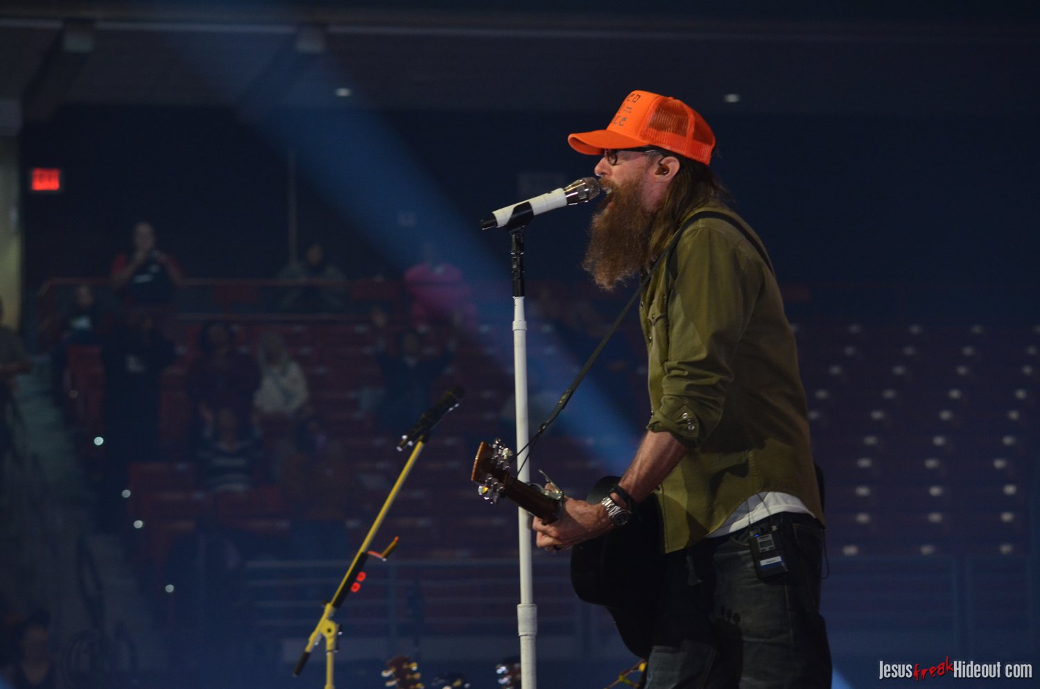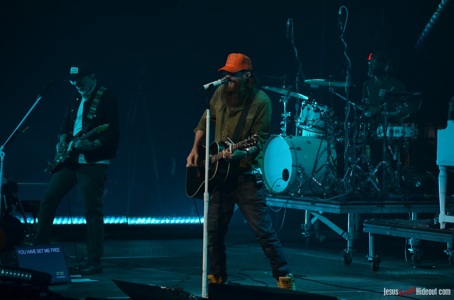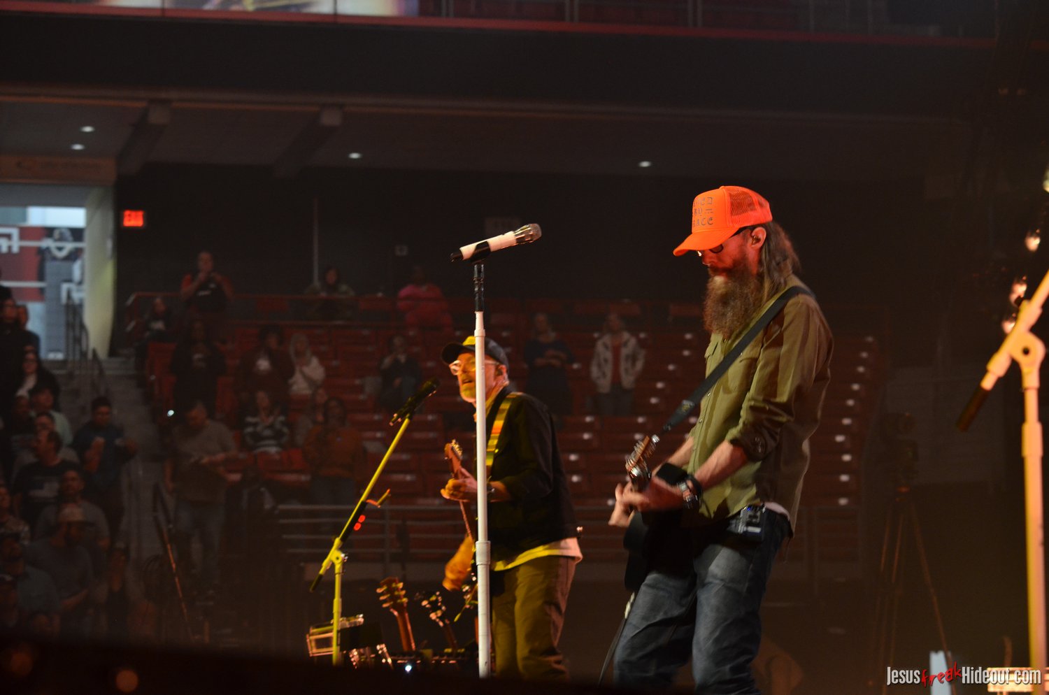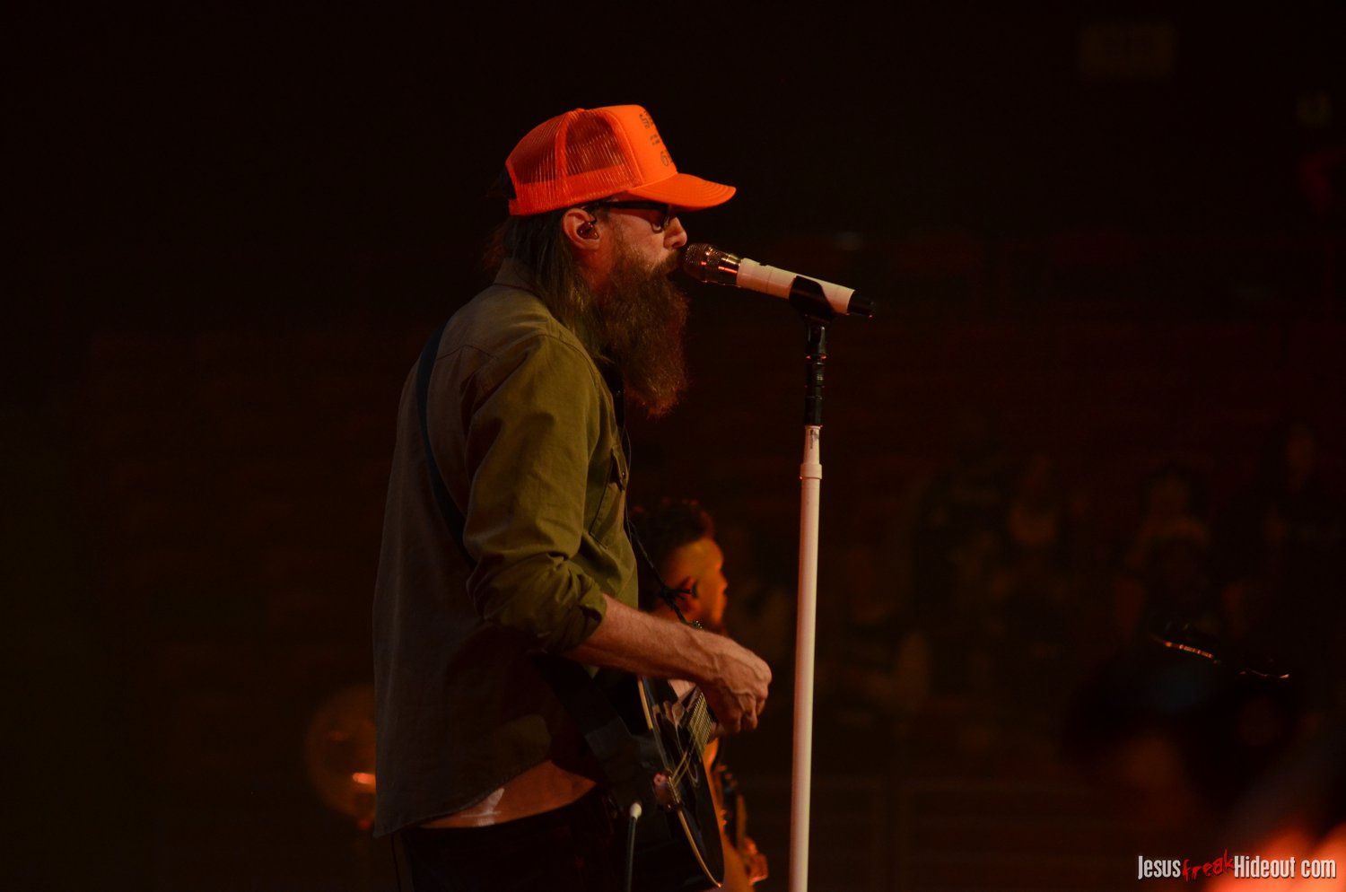 The stage layout for the tour is pretty impressive. One look at it and you instantly can understand why there are three full size tractor trailers parked out front. It's massive. The front of the stage expanded to include a full-size cross-shaped stage extension. I've found cross-shaped stages to seem a little tacky at worship events and such, but in this context, it somehow feels less gaudy and more practical - especially in how it would be used during the night. Jeremy used the stage about mid-way to get closer to the audience, and it worked well for his set. He had a full band and, while we were there, performed hits like "Keep Me in the Moment," "Getting Started" and "No Survivors." I was pleased to see him not being afraid to lean into his rock roots a bit more, too, and it made for a more captivating set. The night supposedly began around 7pm (I wasn't there on time to verify that), but Camp was done with his set around 7:35.
