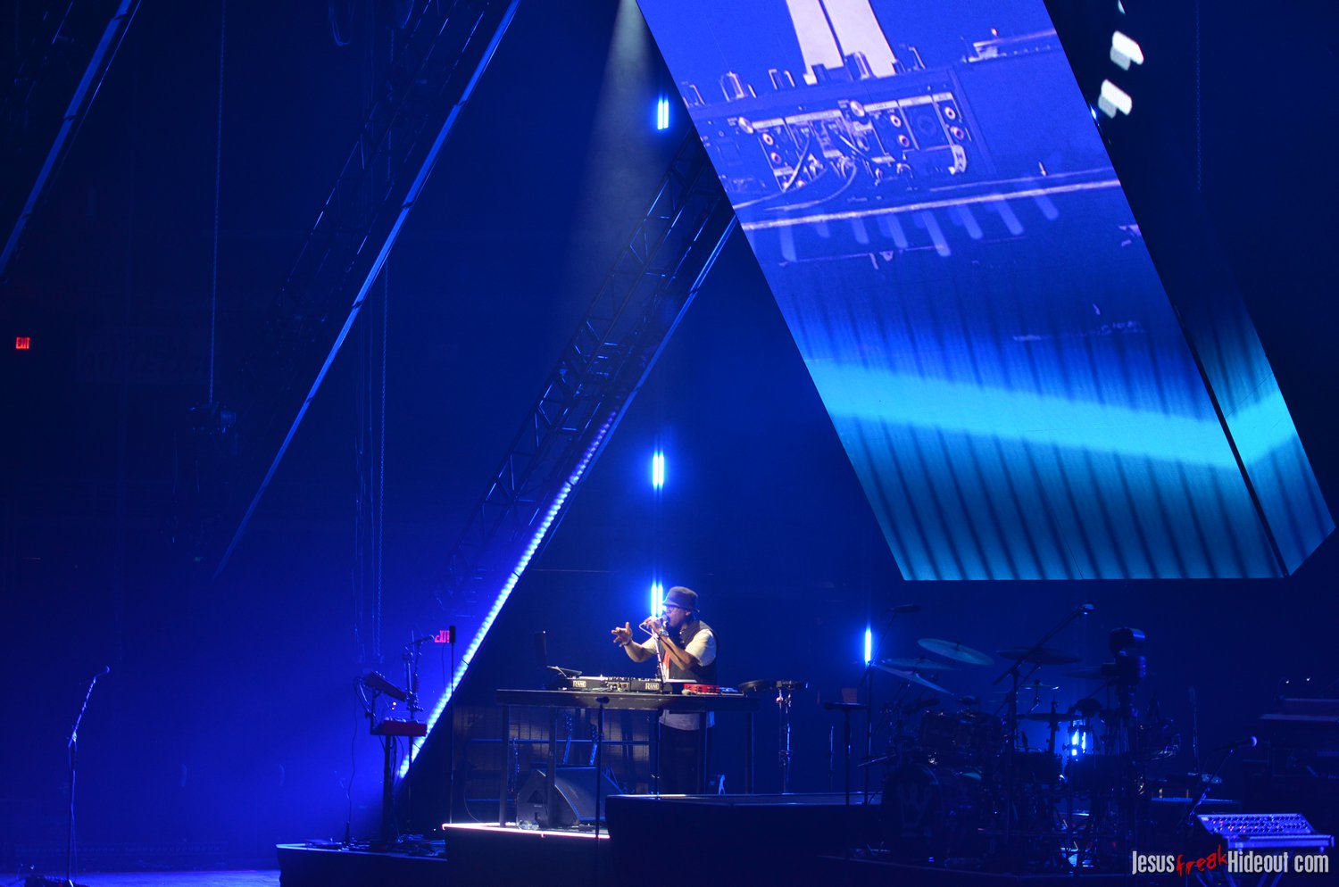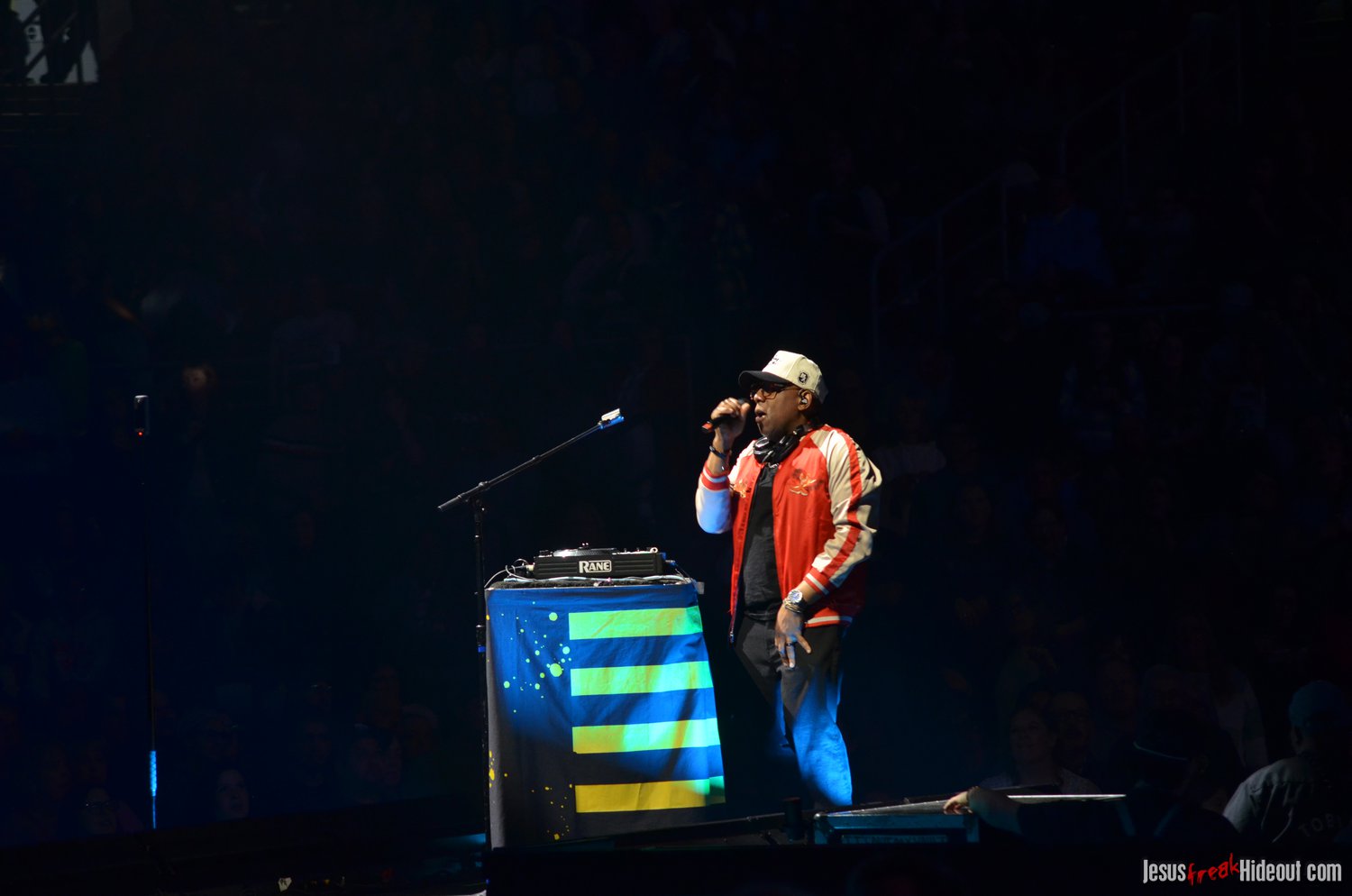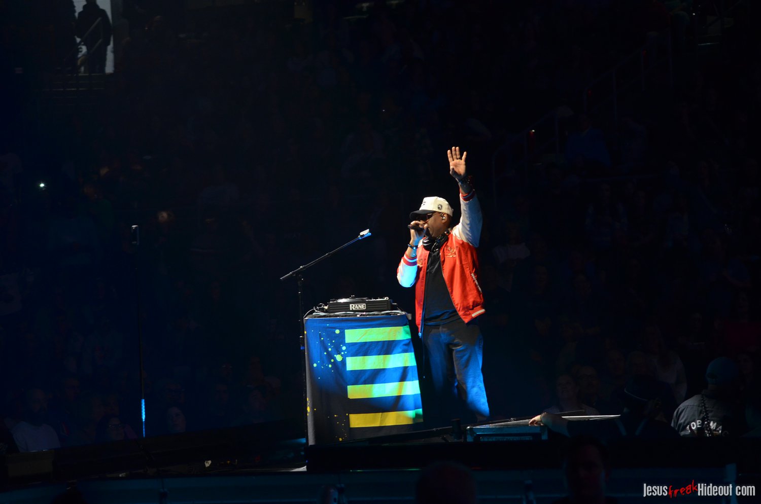 When Jeremy left the stage, DJ Maj - from TobyMac's Diverse City entourage - showed up on the crossbeam part of the cross-shaped stage to perform a bit of a "dance party." It was a fun little set where Maj mixed popular mainstream and Christian pop hits together to get the crowd moving and on their feet. Considering how set changes can feel long and like mood resets, it was a really effective way to keep the party going as we waited for the next act. DJ Maj incorporated such notable tracks like "God is Good All the Time," "Feelin' So Fly," "Can't Stop Till You Get Enough," "Edge of My Seat," "Everybody (Backstreet's Back)," "Jump Around," "Ice Ice Baby," "Somebody's Watching Me," and "Can't Touch This," among others.