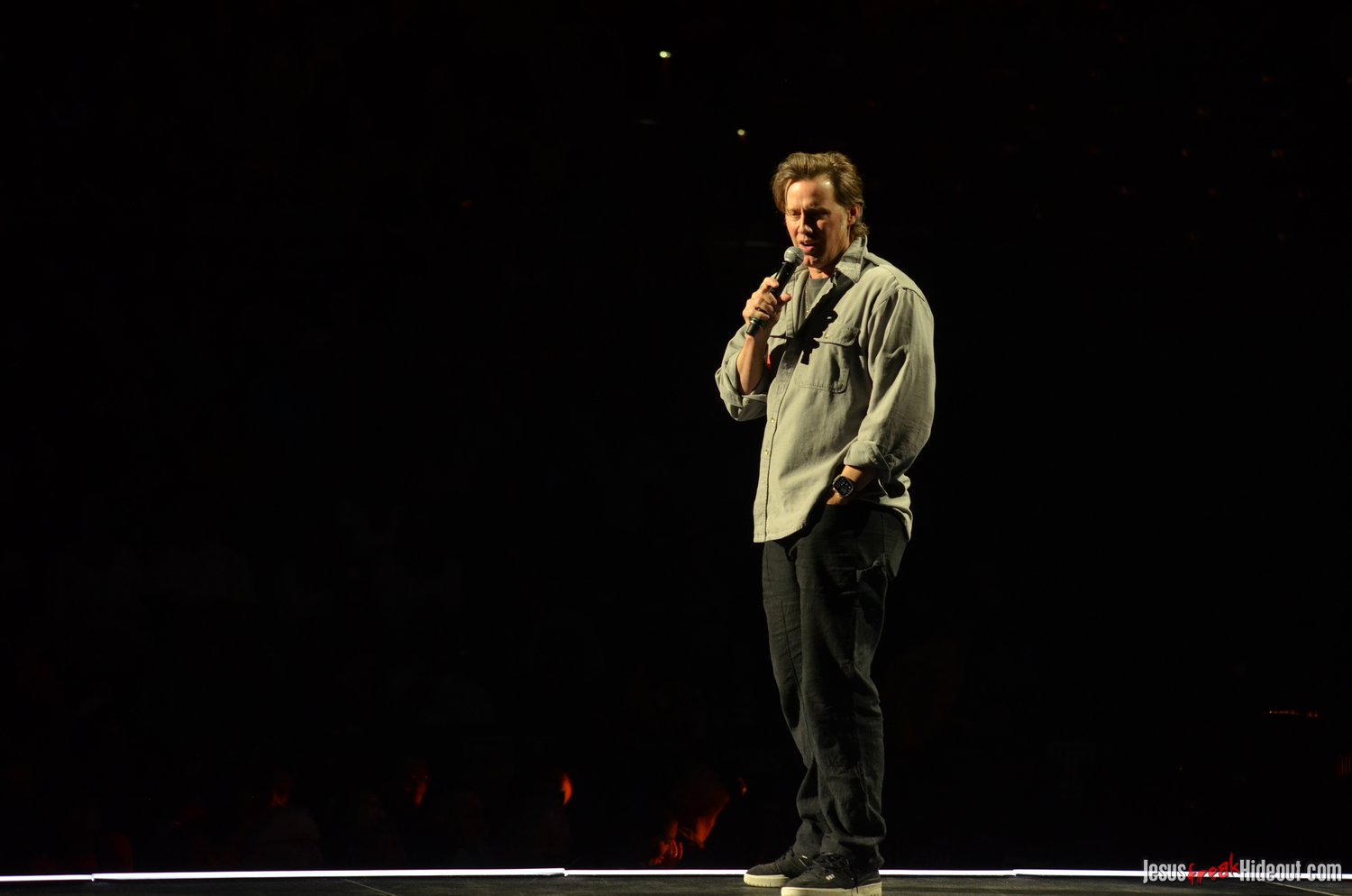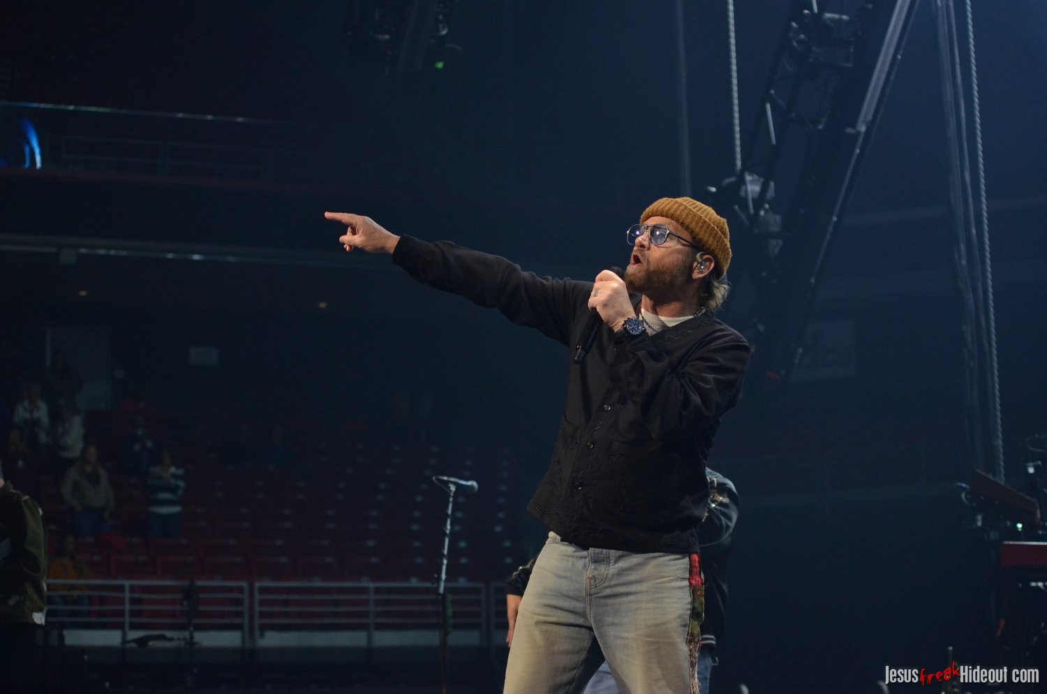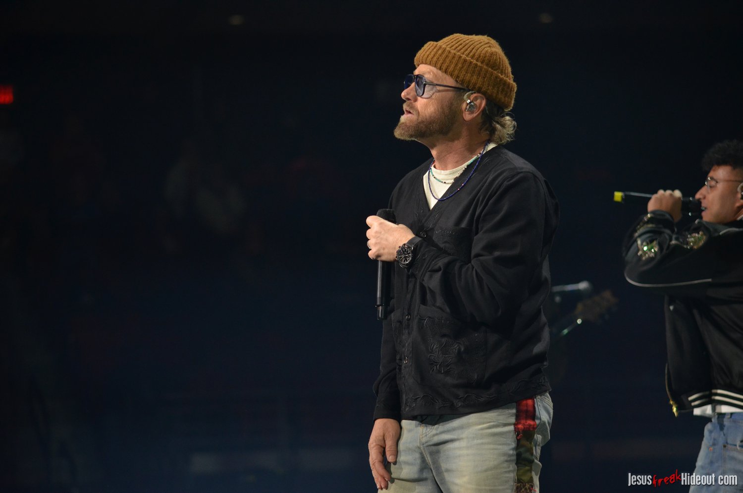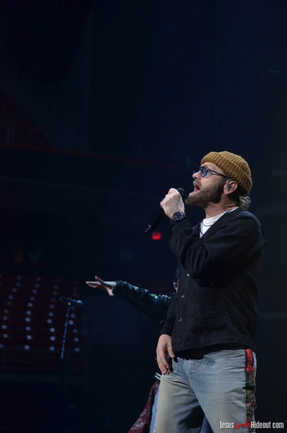 To my surprise, when the stage went dark, a spotlight illuminated a lone guest speaker, none other than Jason Roy of Building 429. Jason was there to promote Food for the Hungry, encouraging the audience to sponsor a child to be the hands and feet of Jesus. He quoted Psalm 121:1, shared about his own experiences sponsoring through Food for the Hungry, and then left the stage around 8:48pm, saying Toby would be out in about 10 minutes (giving people a chance to hit the restrooms, check out the merch tables, or grab some food).