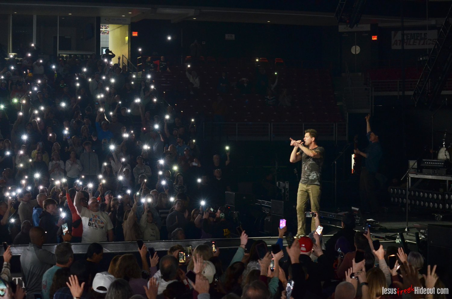 Anyone married and/or with kids knows how hard it can be to arrive anywhere on time. So, when it came to getting my family out the door to the center of Philadelphia on a Saturday evening for an event, we discovered it to be a challenge to get on the road on time. I'd never been to The Liacouras Center, which is part of Temple University, so I wasn't quite sure what to expect. The Center is right in downtown Philadelphia (at least - that's how I'd describe it), and parking is definitely tricky. There's a parking deck across the street from the entrance to the venue, and event parking was $27 for the night. There was a lot of traffic around getting to the parking deck, and then threading through the lane climbing up the structure. By the time we parked, took the elevator to the bottom, got through security (which only accepted clear bags - thank God for photo passes), opener Jeremy Camp had already begun.