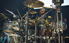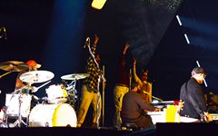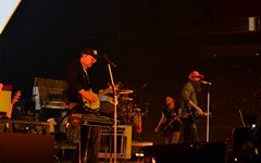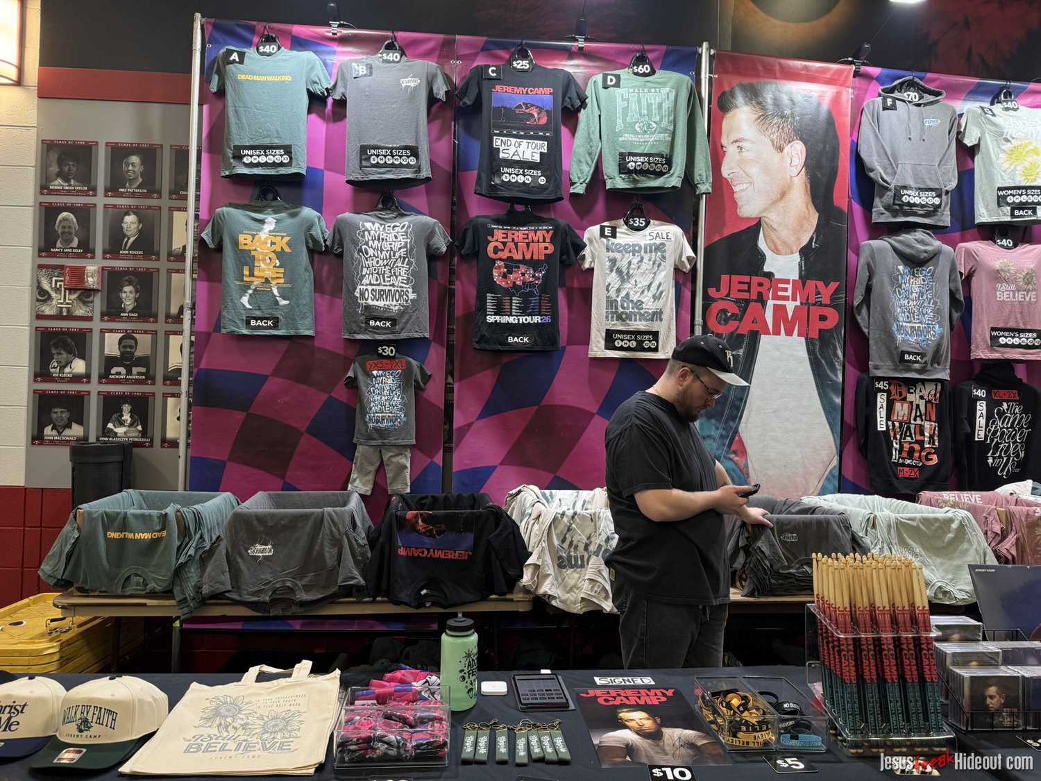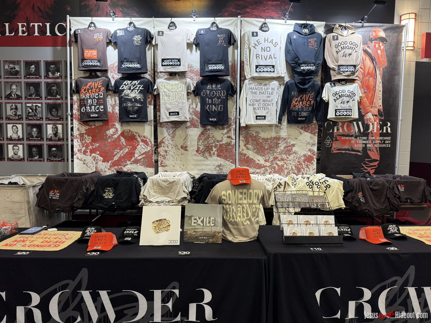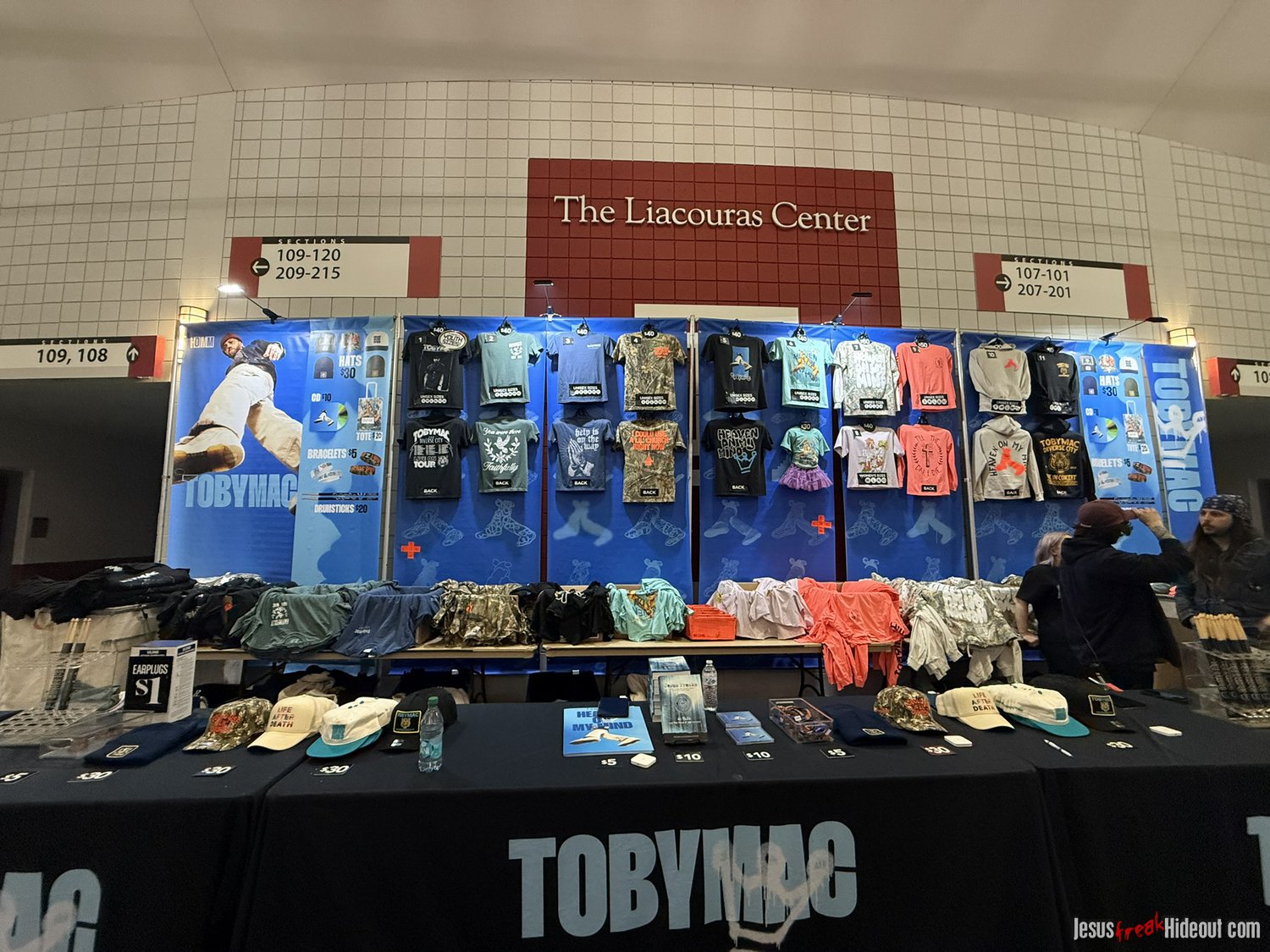 From the merch table: Oh, there were lots of goodies for fans to choose from. Prices seem so much steeper these days, so hoodies were $70 and shirts were $40, but some of the booths had discounted items. I was surprised to see Toby wasn't selling any vinyl records, but he did have $10 CD's, and Crowder had Milk & Honey and The Exile on vinyl. There were a lot of other accessories, too, like bracelets, hats, posters and drum sticks - so there were definitely some fun items to check out. (You can see the quick mobile photo snaps I grabbed below.)
