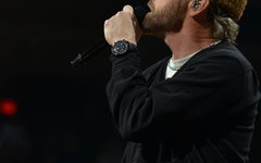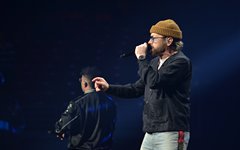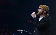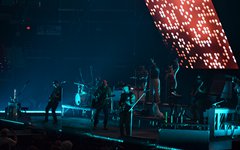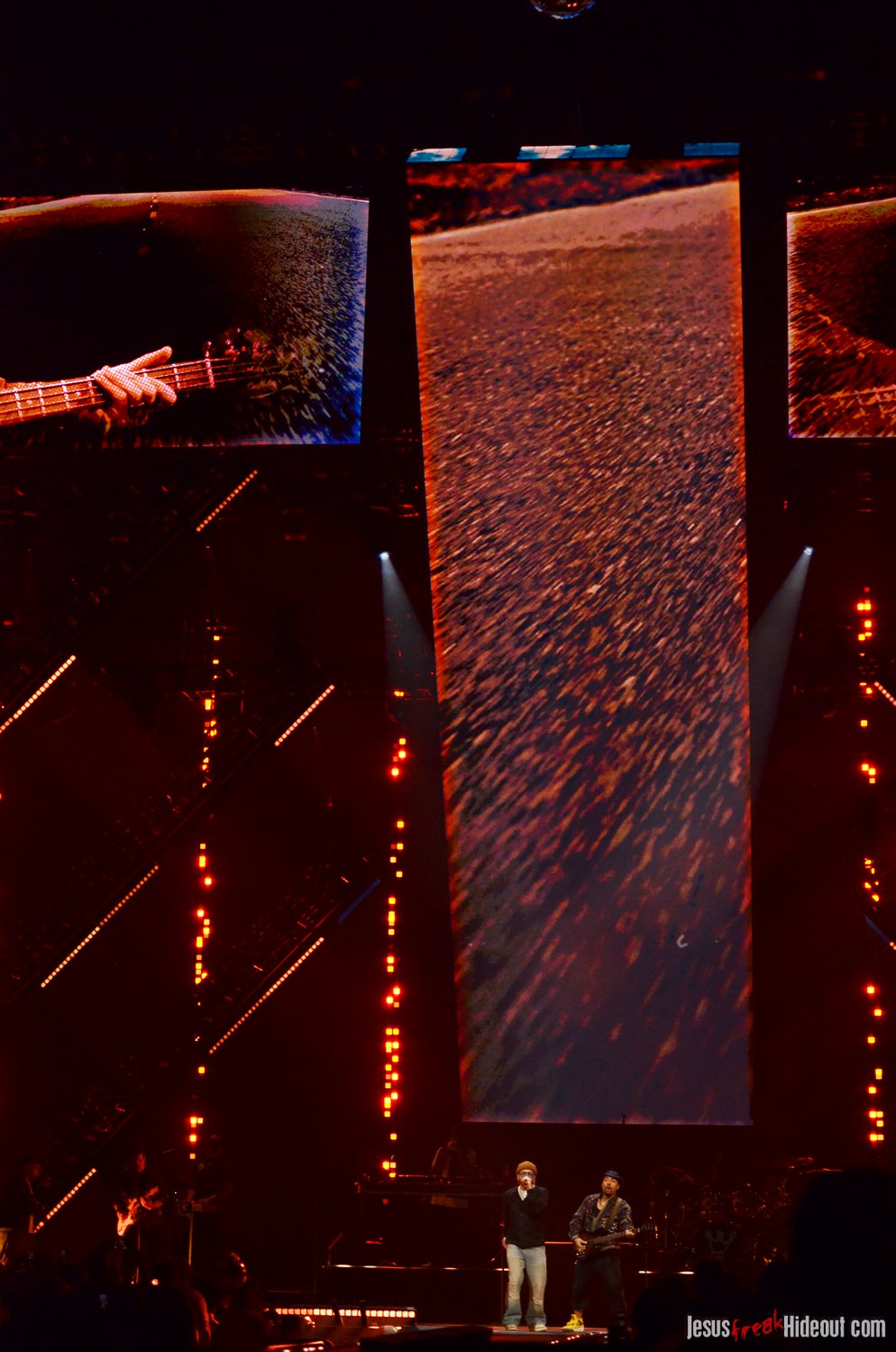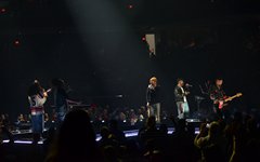Crowder took the stage next with a massive live band. Two drummers, keys, strings, backup vocalists -- it was a sight. He opened with "Grave Robber" and then continued on with "Milk and Honey" before stopping to greet the audience and then perform "It Really Is Amazing Grace." The stage also displayed a massive vertical screen hanging behind the band, with two more horizontal screens on either side. I'd never seen anything quite like it. They displayed a mix of live footage throughout the night, random imagery to go along with the song being performed, lyrics to sing along to (at least in Crowder's case), and pieces from music videos. It was almost like someone set a gigantic smartphone behind the artists. While it's nice to get a break from screens at a live show - and it's hard not to focus on screens when they're right in front of you - it was still a neat addition to the stage setup. "It Really Is Amazing Grace" was next, then a mash-up of "Somebody Prayed" and "Goodness of God," before a piano was wheeled over to David and he sat down to share a fun story about how both he and Jeremy Camp can owe meeting their wives to TobyMac (and dc Talk). Coincidentally, "Red Letters" followed - not the dc Talk version - and "Come As You Are." The piano was then wheeled back away and Crowder stood for the rest of his set, performing one of my favorites, "Lift Your Head Weary Sinner (Chains)," which he segued into "Crushing Snakes." Crowder then closed with the worshipful hit, "Good God Almighty," bringing his live and boisterous church service to a close around 8:29pm.