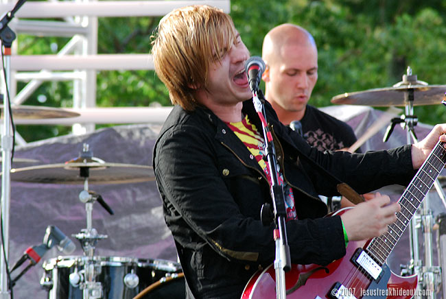 Unfortunately, it was at this point that my wife and I decided it may be best to head back to the Hollywood Stage to catch some of Hawk Nelson's set before it finished. We didn't know how long either band would play, so considering the possibilities of just 10-song sets, it seemed ideal to leave after five songs from Jars. We arrived at the Hollywood Stage as the Hawk boys were at the kazoo playing part of their song "Hello" from their sophomore album Smile, It's The End Of The World. Vocalist Jason Dunn brought his girlfriend on stage to play the little plastic instrument along with him, and the song was soon followed by a cover of "Just What I Needed" by The Cars. The pop/punk band's popular anthem "California" followed, before Dunn paused for a serious introduction to the suicide-themed ballad "Zero." The portion of their set that we saw just seemed to breeze by as the band closed with the raucous "Bring 'Em Out," and we exited the audience to look for a friend of ours. While we stood by the merch stands located to the side of the Hollywood Stage, we soon heard an acoustic version of "36 Days" drift over as Hawk delivered a humble encore. As we mingled around the Hollywood Stage for some time after their set, I was disappointed to note that Jars Of Clay kept on playing long after Hawk's conclusion, and I wished I'd known they would play so long beforehand so I could have made it back to The Yard for some of it. Even from where we were by the Hollywood Stage, I recognized the subtle hints of recent set Jars staples like "Dead Man," "Love Me," their cover of INXS' "Don't Change," "Flood," and their closer "Light Gives Heat."