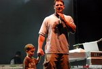 Before the Newsboys were to perform, guitarist Paul Colman warmed up the audience with just his pipes and an acoustic to get the crowd going. And after what felt like too long of a wait (between speaker AJ Styles and the start of the Newsboys' actual set), Christian music's favorite Australians (and one American) emerged to the catchy sounds of "Wherever We Go." Much of what the night had in store for Newsboys fans (and fans-to-be) was the same from last year's wildly popular "GO Tour." So while anyone who saw that set could mostly predict the band's every move, the foursome left room for a couple of surprises. "The Mission" followed, along with "Something Beautiful," before breaking the string of newer songs with an overlong cover of the renowned Matt Redman original, "Blessed Be Your Name," a song the band has been covering relentlessly for years. While they do a good job on it, they drag it out much too long, and considering that their set barely contains many songs at all, it'd be nice to have them trade that one in for something of their own. "He Reigns" was next, with the delightful addition of "Stay Strong" from their latest Greatest Hits installment (honestly, throwing "I Fought The La" in there too would have been a nice treat). As on the GO Tour, the band brought along their catwalk that protruded from the middle of the stage into the audience, which was often used by Colman and vocalist Peter Furler throughout the set. But at this portion of their show, all four members gathered in a circle, huddling around Jeff Frankenstein's keyboard, and along with an abbreviated message from Furler, the group performed a line or two from the choruses of a couple favorites, including "Not Ashamed," "Reality," "Love Liberty Disco," and "Amazing Love." Sadly, it was only the latter that got the most attention. The short pieces of fan favorites were not only mere teases, but were just a total of four song snippets. With as short as they were, there was no reason why they couldn't even drop in some "Spirit Thing," "God Is Not A Secret," "Million Pieces," Take Me To Your Leader," etc. But after they returned to the stage, the group launched into "Shine" and "Breakfast," two set staples that are likely to spark riots if omitted. For "Breakfast," the audience went ballistic, and a few fans even pulled out boxes of Captain Crunch and began hurling handfuls of cereal into the air. At one point, Furler snatched a bag from a fan, held it up with a mischievous grin spread across his face, and proceeded to try to toss Captain Crunch pieces at Colman who tried to catch them in his mouth (and failed miserably after several tries). With the close of "Breakfast," the band exited briefly, only to return for an encore. With "Your Love Is Better Than Life," jets of red, white, and blue confetti shot into the air and into the audience to rain down over the crowd. And after wrapping the song, Furler returned to the catwalk platform stage to duel with drummer Duncan Phillips who sat upon his throne of drums. The two seasoned drummers volleyed solos back and forth before the climactic moment when Phillips' set rose into the air at the same time that Furler's circular platform did. However, just as first-timers to the show might think Furler had won the crowd's hearts, Phillips' set began its inevitable tilt forward and rotated several times before stopping, with the drummer displaying his talents the entire time. With the completion of the competition, the band reassembled and the foursome closed with the worship anthem, "I Am Free." In the end, it was a spectacular set (as usual), but still, the absence of more classics was certainly felt.