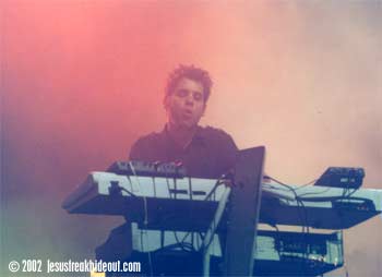 At 7:15pm, Joshua Harris gave his message "Holiness is a Harvest" from the Main Stage, which we caught some of while seeking sustenance from the food court vendors. At 8:30pm, Jennifer Knapp performed while we wrapped up our required work for the week, but we congregated in front of Main Stage for one last time for the Newsboys performance at 9:50pm. With a massive crowd that was ready and willing for the Newsboys' set, the stage crew began experiencing technical problems behind the scenes. This set the start of the show back a good 15 to 20 minutes before the five piece band from Australia could open with "Givin' It Over." From the opening of their show, it was clear we were seeing a different kind of Newsboys performance. And by the end, I knew that despite seeing them numerous times over the past seven years, this was definitely one of their best -- if not their best -- live shows I've seen them do. It was less about "show" and more about the music. And while they are amazing musicians (don't get me wrong), they used to focus a lot on performance. It was nice to see less of a focus on it this time around. "Who?" followed next, along with the popular "Love Liberty Disco," and the fun "Cornelius." One of the many evening highlights came during their performance of my personal favorite "Million Pieces" which urges the listener to lay their burdens down at the foot of Jesus. To many's surprise, bassist Phil Joel began singing his popular solo song "God is Watching Over You" which the band used to lead into "Entertaining Angels." For a second year in a row, the Newsboys utilized the use of green laser beams from behind Duncan Phillips on drums several times throughout the show which cast patterns and shapes across the farm onto the tree line up the mountain. A brief cover of Keith Green's "Lord, You're Beautiful" led into "Joy" which was followed by the fun rock song "John Woo." Guitarist Jody Davis sang what sounded like an old hymn which led into the prayerful and worshipful "Lord, I Don't Know." They kept the worshipful mood going with "I Want to Glorify You, Lord" before lead singer Peter Furler stopped to greet the crowd and offer a short message. The band then closed with the ever popular "Shine." Although, predictably, the band had to return for a few more songs before the festival could end. And of course, return they did for "Fad of the Land" and the always fun and crowd-pleasing "Breakfast." But they ended the evening, and week, just right as they peformed their smash hit worship song "It Is You." The Newsboys focus was undoubtedly on worship that evening and it showed. A more matured performance, the Newsboys were the perfect closers for Creation 2002.