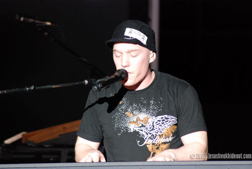 BEC Recordings own smash hit act Kutless was up next, bringing their own brand of pop-flavored hard rock in the same vein as mainstream acts like Creed or Nickelback. But while their sound may be reminiscent of some mainstream counterparts, the biggest difference you'll immediately find with a group like Kutless, is their heart for Christ. Frontman Jon Micah Sumrall emerged on stage first with acoustic guitar in hand to begin performing "Strong Tower" before he was joined by the rest of Kutless. The guys probably gave those unfamiliar with the band a false sense of security as to what kind of show they were in for as they continued the worshipful mood with "We Fall Down." But this wouldn't last too long, however, because soon Sumrall would let out a scream, "Are you ready to rock!" and amp things up with "Hearts Of The Innocent" and "Pride Away." "Somewhere In The Sky" and "Shut Me Out" were next, with Sumrall sitting at a piano for the anthem-for-marriage "Promise Of A Lifetime." Sumrall also shared a bit of the band's history, including their humble beginnings as a worship band, and the group soon closed with "Sea Of Faces" and "Better Is One Day." Their set was solid, but I can't say they seemed to really fit on tour with a band like Newsboys.