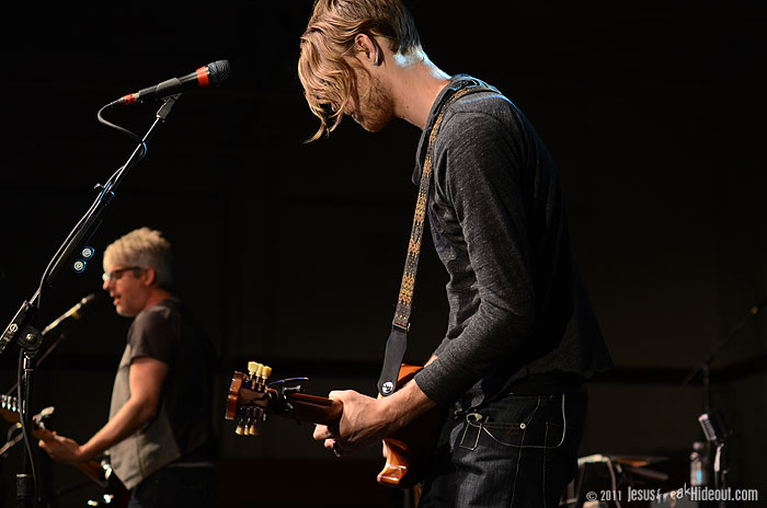 When Matt and his team exited, Jars of Clay frontman Dan Haseltine stepped up to the microphone to briefly talk about Blood:Water Mission and asked the audience to consider giving to the charity. He also informed the crowd that the organization made their goal in November of last year, delivering clean water to 700,000 people! Haseltine then introduced the next artist, Derek Webb, and left the stage. Webb, who originally launched his career as part of Jars' labelmates Caedmon's Call, emerged with just a guitar and a mic, with an electronic set up to his right. Starting with a few acoustic songs, Webb opened with "The Very End" from his album The Ringing Bell. He then warned the audience, "I hope it's not too early in the night for sarcasm" before performing "A New Law" from Mockingbird. Before the next song, Derek stopped to talk about his latest project, Feedback, an instrumental project inspired by the Lord's Prayer with each track representing a verse from the prayer. After playing one more acoustic song, "Wedding Dress," the spotlight switched to backlight the artist as he set the mood for the first three cuts from Feedback: "Our Father In Heaven," "Hallowed Is Your Name" and "Your Kingdom Come." Webb bounced between a guitar slung over his shoulder, his Macbook, and a keyboard as he painted a unique landscape of music to inspire a worshipful heart. The three tracks flowed seamlessly and it was a great way to close his set. I'd love to hear a full concert of just Webb's instrumentals sometime.