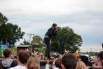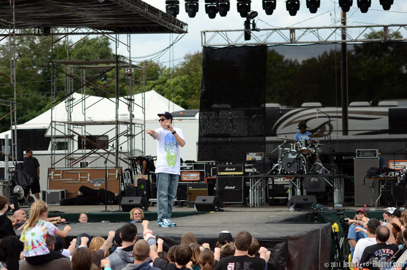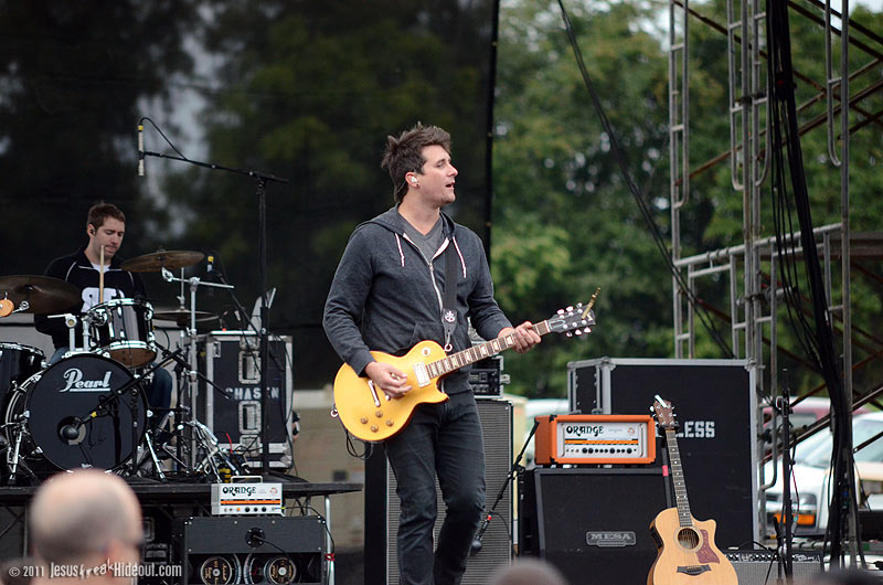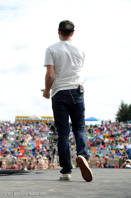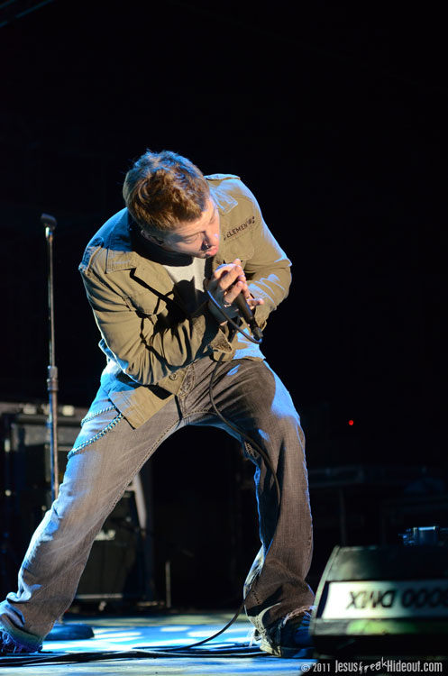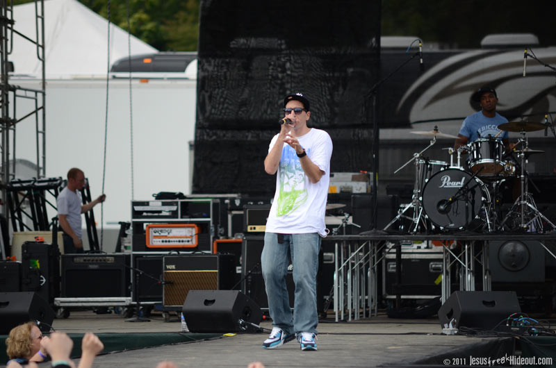 We sought lodging overnight nearby in Chambersburg, PA and returned early the next day for a full day of performances and activities at Uprise 2011. Sadly, delays ran amuck once again. While they did try to make up the lost time, sets did have to get cut short once again. The upside to the delays is it cushioned what was otherwise a pretty loaded day of performances, but it also caused some shows to conflict with each other that otherwise wouldn't have if things had stuck to the schedule. Chasen was set to perform at 11:00, but I don't think they got rolling until later. BEC Recordings worship band The Museum was scheduled for 45 minutes later, and put on a decent modern worship set. At noon, indie folk band The Vespers performed an enchanting set on the RockStar stage. As sort of a more folk and bluegrass-based, stripped-down version of Eisley, their set was a nice midday surprise. Chris August's 12:35 Main Stage set was delayed a full thirty minutes. He opened with "You and I" and continued with "Loving You Is Easy" (complete with a humorous disclaimer), and then "Battle" before I returned to our merch table. Manafest's 1:05 set at RockStar had been cancelled due to his inability to attend, but KJ-52 followed August, while celtic punk rock band Flatfoot 56 drew a nice crowd at RockStar Stage (including a few of the Hawk Nelson boys). I caught Flatfoot performing "I Believe" along with a fun rendition of the hymn "I'll Fly Away" before catching a few minutes of KJ as he performed "Firestarter," his ode to the drink Mountain Dew, "Swagged Out With Tags Out" and "Tweezy Dance" (the latter two of which are both from his latest record, Five-Two Television). He also performed his mix of 90s tunes, which he seems to perform at most shows these days, but I would have preferred to hear more of his own songs from his vast catalog of music.