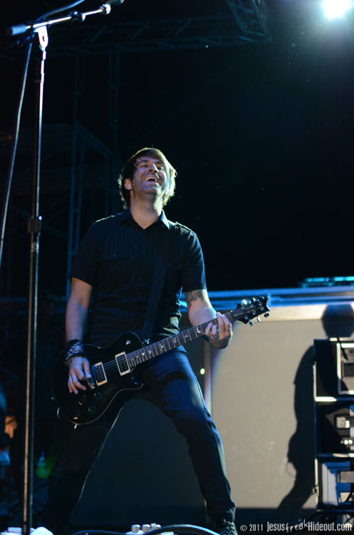 Before Remedy was totally finished, I made my way over to the RockStar Stage to catch what was left of Project 86's 4:30 performance. Again, their set should not have conflicted with anyone else I'd wanted to see at their time, but the Main Stage delays pushed back Remedy Drive and I didn't want to miss them. Since Project 86 had just performed at Purple Door a month earlier, I decided the logical choice was to miss some of their show. When I arrived, they were finishing up "Last Meal." I'd assumed they would perform the same exact set as they had at Purple Door, especially since their shows have been pretty similar this year in support of their new live album, 15. However, I was surprised that the guys broke into the ominous anti-porn track, "P.S." from their 2000 release Drawing Black Lines. It's a powerful song and a nice addition to their set. Unfortunately, it didn't seem like the Uprise audience felt the same way. While some of the audience were clearly into Project's show, the audience was surprisingly on the smaller side and some people just sort of stood there and stared. "Evil (A Chorus of Resistance)" was a nice follow-up, and front man Andrew Schwab did his best to get the crowd moving. "Safe Haven" was next and then Schwab stopped to really encourage the audience to support the ministry MochaClub. It's great to see him share his heart from the stage, and he made it apparent that his recent venture into fatherhood had stirred up some passion to become a voice for this ministry. To close, they ripped into one of their most brutal rock tunes, and a personal favorite, "Sincerely, Ichabod."