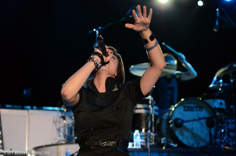 Speaker Tony Nolan still had some time to share a message with the audience before Fireflight's shortened rock set launched. Displaying new drummer Adam McMillion (from Search The City), the fivesome was more than prepped and ready to deliver. Appropriately, they opened with the title track from their third record, For Those Who Wait and continued with the anthemic "Stand Up" from Unbreakable. It's amazing how a seemingly little change like a new drummer could add to the on-stage energy, but McMillion's animalistic drumming skills really beefed up the band's set. Dawn Michele was as engaging a vocalist as ever as they entered into "Fire In My Eyes" and "Desperate" from For Those Who Wait. Dawn then took a moment to talk anout contentment and doing all things through Christ's strength before aptly playing "What I've Overcome." To wrap up their set, they amped things up again for "You Gave Me A Promise" and then closed with their biggest hit to date, "Unbreakable."
