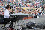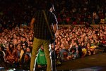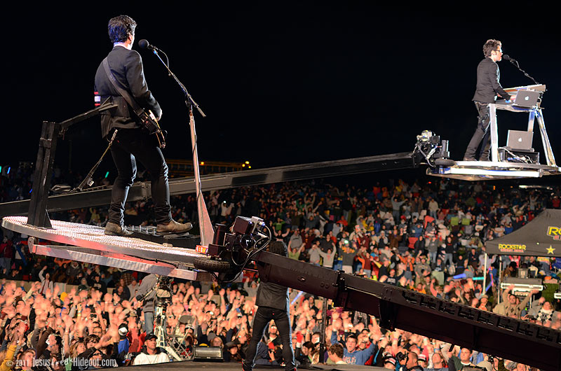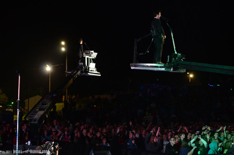 One final set change ensued and this time, it was to prepare for the massive spectacle that is otherwise known as a Newsboys show. The Newsboys, for decades have been known for big performances, and as their era with Peter Furler wound down, they had begun to return to having shows with bigger production. When the transition was made over to having Michael Tait as the band's front man/vocalist, things were stripped back and kept pretty simple. It was all about the music once Tait was on board. But it didn't take long for the production to be amped up once again. Soon, platforms on large steel arms were used to lift guitarist Jody Davis and keyboardist Jeff Frankenstein into the air and over the crowd. But even before that, Tait was utilizing the "B Stage" ascending platform that Furler had been using previously for a drum solo, and Michael would fly back down to the stage while performing his previous band's anthem, "Jesus Freak." For this night, they didn't hold back. Frankenstein's and Davis's platforms were in full effect, along with Duncan Phillips's rotating drum kit. The Newsboys were fully adjusted as their newest version of themselves with Tait in place up front. The band opened with the rocker "Escape" from Born Again, and kept the newer tracks coming with "Way Beyond Myself" and "When The Boys Light Up." They then brought out "Something Beautiful," from Furler's era, which Tait has been singing since joining the band, followed by "He Reigns" which has also been a longtime fan favorite. In between those cuts, Duncan offered a signature drum solo, complete with spinning kit. "He Reigns" had ushered in the worship portion of their set, and Tait followed it with a wonderful and chilling acapella version of "Turn Your Eyes Upon Jesus" (a classic Newsboys cover), before merging it with "Mighty To Save," which was featured on Born Again and will be recycled for their upcoming worship album God's Not Dead (it would have been cooler if they had just played a new cut from that instead, though. "Might To Save" is quite played out). Tait then took some time to share from his heart (which also included him gushing about the talent displayed at the festival earlier in the day, as he sat side-stage almost all day watching the different acts perform) before performing "Born Again," and then "Miracles" (which utilized the platforms). Frankenstein then cooked up a nice dance beat before Tait sang a pair of Newsboys classics, "Shine" and "Breakfast" (which still sound a little odd without an Aussie singer), before closing with band member introductions. At the end, the band exited, but soon returned for a two-song encore which included one of their newer songs from the re-release of Born Again, "Save Your Life," and then the dc Talk original, "Jesus Freak."