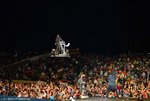 After an extended set change, hard rock sensation Skillet soon ignited the stage (quite literally) in a blaze of pyro as they opened their memorable set with "Whispers In The Dark" from their career-defining album, Comatose. "Better Than Drugs" followed, and then the band hit the audience with one of their most popular songs right now, "Hero," complete with pyro throughout. Their stage setup had grown a bit, too, since I'd last seen them a year ago. The drums were perched upon their own unique platform that would later reveal just how unique they are. It was a nice change from their usual stage display and it made their show feel even bigger. Korey Cooper used a computerized vocal effect as the intro to "Comatose," and frontman John Cooper followed the song with a bold and inspiring speech about not being ashamed of Jesus. He used it as an appropriate segue into "Awake and Alive," which also featured pyro. At this point, Jen Ledger's drum set slowly slid forward into the middle of the stage and rose up into the air. It was a cool effect and a nice tough. The catchy "Those Nights" followed, which is always a crowd favorite, and Cooper did his usual filming of the audience to later post on YouTube. Cooper then talked again, this time declaring Jesus as his biggest hero, and explained the meaning behind their song "The Last Night," before performing the rock ballad. Afterwards, Ledger's drum set rose again and spun around (a la Newsboys) for a cool drum solo, before it returned to its place on stage and the band broke out in "Savior," from Collide. During this song, Skillet made full use of the catwalk as everyone (sans Ledger) took their place out in the audience on the catwalk. The emotional ballad "Lucy" followed, and then the stage went dark again, with only the creepy image of a monstrous face being illuminated. Cooper appeared amidst the beast to perform the fan favorite "Monster." The theatrics were pretty over the top, but it made for an impressive visual. The string section performed dual solos to precede the evening's finale, "Rebirthing." It was a good mix of some of the band's most popular recent hits, as they returned to performing more songs from Comatose and only the highlights from Awake. I'm still eager to see where they go next.