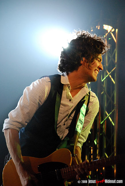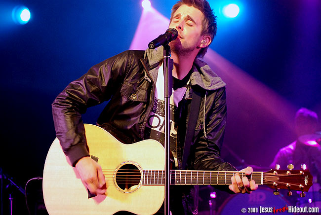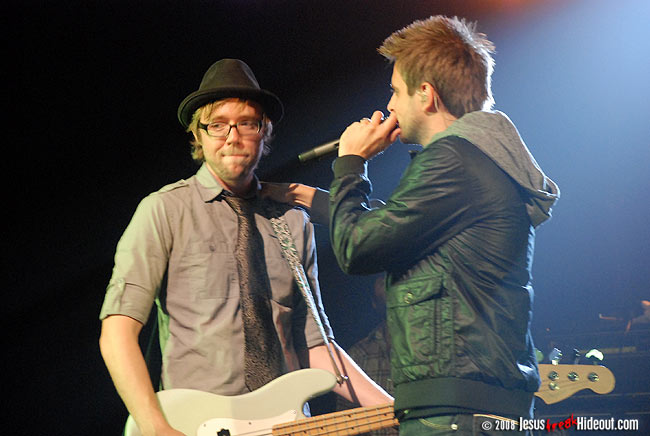 After a short set change, Reunion Records worship act Tenth Avenue North stepped up. Their soft and slow set was a bit of sudden stop after VOTA revved up the audience. Their set was hardly upbeat, so while their style was closer to some of Sanctus Real's slower offerings, they just didn't have much unique about their show or sound to set them apart from like acts. They opened with "Rain" and moved into "Beloved" and "Satisfy," with vocalist Mike Donehey pausing to reflect (a little dramatically) on the thought of how he was reminded while viewing nature that all we ever need is Jesus. "By Your Side" was next, and soon the group closed with their most known track, "Love Is Here," much to the excitement of fans in attendance.