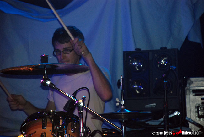 When gametime arrived, VOTA took the stage first. The stage setup was rather homey -- Sanctus had a couple throw rugs laid out for them which they shared with the opening acts, while lighting was kept to just a framing rig across the back and down the sides -- no big screens, no elaborate setups. VOTA were a nice surprise as an opener. The foursome seemingly disappeared for awhile after the release of their self-titled debut on Inpop Records as "Casting Pearls" a few years back, and around the time that Casting Crowns began getting immense amounts of attention. While, musically, VOTA may sound like many other fast pop/rock bands, it's Bryan Olesen's incredible vocals that help these guys stand apart from everyone else. And Olesen, who also turned in a couple-year stint as the guitarist for the Newsboys while putting his band on hold, has great stage presence as a front man. The band opened with "Alright" from their CP debut, but filled the rest of their set with new VOTA tracks. After "Alright," they launched into "Hard To Believe" and then "Free To Fail," which Olesen used as a chance to talk about the Apostle Paul's declaration of himself as the worst of sinners, yet God used him for incredible things. Next they performed "Honestly" and "Love's Taken Over" before talking about the ministry Food For The Hungry and urged listeners to support them. With that, they ironically closed with the song "Not Finished."