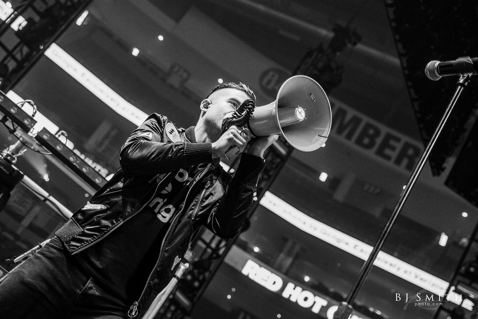 Colton Dixon and Andy Mineo were the next subsequent performers, both playing through 4 or 5 of their most well-known songs. Dixon brought one of the most worshipful moments of the concert with one spotlight and his piano for a performance of "Through All of It." Mineo, on the other hand, tore the roof off of PPG with a blistering performance of "You Can't Stop Me!"