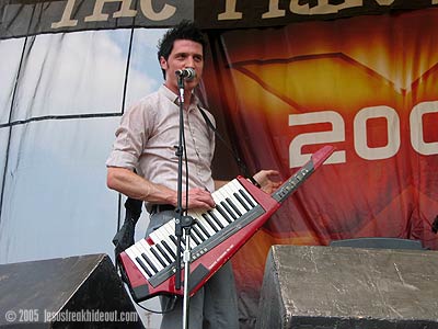 Thursday went a lot smoother. We got to the Agape Farm on the early side for a potential interview (that, of course, never happened), but it gave us plenty of time to get to the first Fringe Stage show of Creation '05 - MuteMath. The four-piece electronic-based rock band (featuring members from the defunct Earthsuit) opened with a new song called "Chaos" before moving into the more familiar "Plan B" from their debut EP, Reset. The innovative and unique "Stare At The Sun," preceded yet another new song, "Noticed," before the guys tore into their show-stopping instrumental highlight "Reset." The first time I'd seen the band performed the song live, it was at the Knitting Factory in New York City in April, and it was just incredible to watch the guys pour all they had into the song. Creation wasn't much different. They closed their impressive set (which garnered the attention of a few artists who watched from backstage, including a certain member from a certain popular trio who's solo set would be one of the evening's closers...) with the familiar "Peculiar People" and their hit "Control."