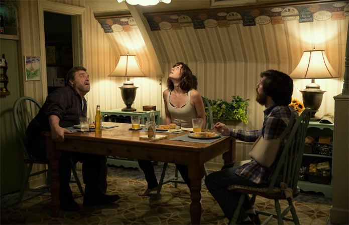 The small cast is lead by Mary Elizabeth Winstead, who is no stranger to the horror genre. She's quite good as the resourceful and strong Michelle, while John Goodman is amazing as a character who can be just as warm and charming as he can be utterly terrifying. He's a big guy with a deep voice, and here he's just really creepy and menacing. John Gallagher Jr., who plays Emmett is a nice addition to the mix. He and Winstead play off each other wonderfully as well. He fits the role of an average Joe kinda guy really well. You're aptly left wondering just what his role is in this mystery, and Gallagher seems to hit all the right (and necessary) notes.
