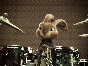 I did appreciate the unique take on the Easter Bunny story, though. As I said earlier, it does take a similar approach to the legend as the Santa Clause series did, and uses Easter Island as a sort of "North Pole," even going so far as to give the Easter Bunny a big candy factory with worker baby chicks in the same vein as Santa's toy workshop and helper elves. Heck, we even see that the Easter Bunny rides a sleigh pulled by about 50 little chicks! E.B. is a young rabbit who's about to inherit the family tradition of being the big bunny himself, but he can't forget his real passion... playing the drums. It's a bit random, but it leads the film to have a musical side which works pretty well for itself... although it is kind of odd to hear songs by Good Charlotte and Poison being played in a little kids' movie. Meanwhile, Fred is an aimless young man who's been unable to find his true calling, and the story becomes all about two different characters pursuing what they really want in life and what they were made to do. Along the way, E.B. and Fred have a bit of a love/hate relationship that offers some solid laughs (There's a great cameo from The Blind Boys of Alabama, as well one from Russell Brand as he meets his animated alter-ego, a fun Knight Rider joke, and a subtle but appreciated nod to Jurassic Park. It's stuff like this that just reinforces the fact that the movie is merely trying to have fun and entertain, nothing more).