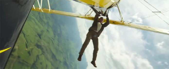 Taking Flight (5:50) - Tom talks about wanting to push flying action in movies. To make this sequence work, they had to reinforce the wing to support Tom's weight. They also built new camera rigs from scratch. They had to undergo many test flights to try it out -- and director Christopher McQuarrie even went out on the wing once himself! (1 "holy *bleep*")