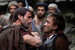 The content of the movie is surprisingly rough. I suppose they tried to make it grittier to make it more realistic, but it does get kind of brutal at times. The movie opens with the Romans battling the zealots, and while it's not particularly graphic, it is very violent and a little bloody (but not gory). The crucifixion of Jesus and the thieves is also pretty rough, but as I mentioned earlier, it's definitely tamer than a film like The Passion of the Christ. Then, later, when Clavius launches his investigation, we see quite a few corpses with varying amounts of blood and in varying states of decay. One of the most gruesome is later in the film when he presents a body to Pilate. It has gory nail holes on the feet and wrists and areas of skin missing. Overall, it's not a light film by any means.