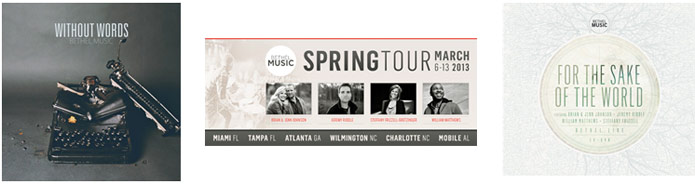 Immediately following the release of Without Words, Bethel worship artists Brian and Jenn Johnson, Jeremy Riddle, William Matthews and Steffany Frizzell-Gretzinger will embark on their first U.S. tour. Hosting "Nights of Worship & Ministry" in six cities, as well as a two-day Bethel Worship Conference, the tour launches March 6 in Miami, FL and travels throughout the Southeast.