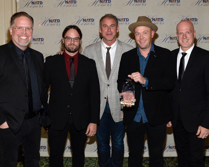 Nashville, Tenn. (Nov. 8, 2018) – MercyMe was among the honorees in their hometown of Nashville at last night’s NATD (Nashville Association of Talent Directors) Honors. MercyMe’s longtime WME Agent Mike Snider presented the honor to the multi-platinum selling band alongside a presentation video encompassing the music, tours and awards of their multi-faceted career thus far. Among the other honorees include Country Music Hall of Fame member and Grand Ole Opry star Bill Anderson, legendary CAA agent Stan Barnett, Variety Attractions’ George Moffett, President & CEO of TPAC Kathleen O’Brien and legendary APA agent Ray Shelide. The event, presented by Creative Artists Agency (CAA) and the Grand Ole Opry, featured Nashville’s best of the best in the entertainment industry to present and show respect to the honorees. MercyMe will wrap their 2018 “MercyMe Imagine Nation Tour” this weekend. The 2019 run will kick off in early March. For the latest information, stay tuned to www.MercyMe.org. About NATD: About MercyMe: Since their debut in 2001, GRAMMY® nominated, multiple American Music Award and Dove Award winners MercyMe have sold more than 9 million units in CD, single and DVD sales, garnered more than 58 No. 1 multi-format radio singles and four consecutive mainstream radio hits with “I Can Only Imagine,” (No. 4 AC/Top 25 on Top 40/Hot AC), “Here With Me” (No. 4 AC), “Homesick” (Top 10 AC) and “So Long Self.” MercyMe made history in 2014 as “I Can Only Imagine” surpassed 2 million digital downloads, making it the first song in Christian music to go platinum and double-platinum in the digital domain. The album containing the hit, Almost There, recently received triple platinum certification from the RIAA. In 2009, Billboard named MercyMe's "Word Of God Speak" the No. 1 Song of The Decade and the group the No. 1 Artist of the Decade in both the Christian Songs and Christian AC Songs categories, recognizing them as one of the industry's most notable talents. They have sold out venues throughout the US and Canada, including Radio City Music Hall, and have appeared on the Macy’s Thanksgiving Day Parade, The Today Show, CBS This Morning, FOX New Channel's FOX & Friends, CNN, ABC News and in the pages of Entertainment Weekly, The New York Times, USA Today and more. MercyMe’s eighth studio album, the RIAA Certified Gold Welcome To The New, garnered two GRAMMY® nods and four radio hits. LIFER, their latest chart-topping, GMA Dove Award winning and GRAMMY® nominated album, includes the RIAA certified gold, GRAMMY® nominated smash hit "Even If” which dominated the Billboard and Mediabase radio charts with a 19-week streak at No. 1. I Can Only Imagine - The Very Best Of MercyMe is available at Apple Music, Spotify, Amazon and iTunes. LIFER is available at Apple Music, Spotify, Amazon and iTunes. Get Connected With MercyMe: