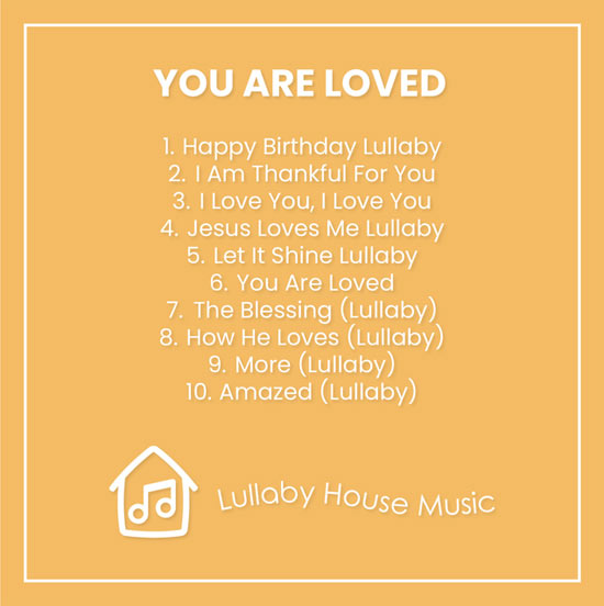 You Are Loved, which is available now. The first album is a mix of carefully written original lullaby songs and a few hand selected cover songs such as the 2020 massive hit, "The Blessing."