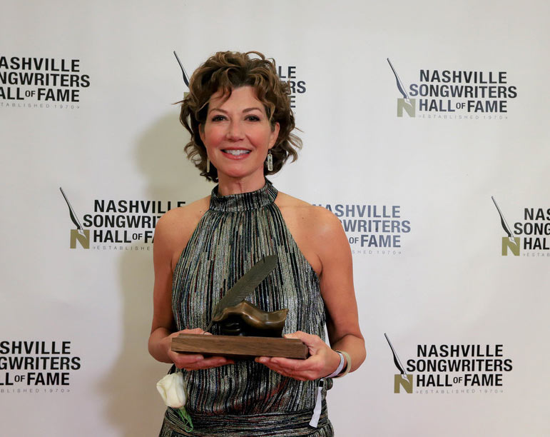 Class of 2021 Pictured (l-r) are: NaSHOF Board Chair Sarah Cates, Inductees Rhett Akins, Toby Keith, Buddy Cannon, Amy Grant and John Scott Sherrill and NaSHOF Executive Director Mark Ford.