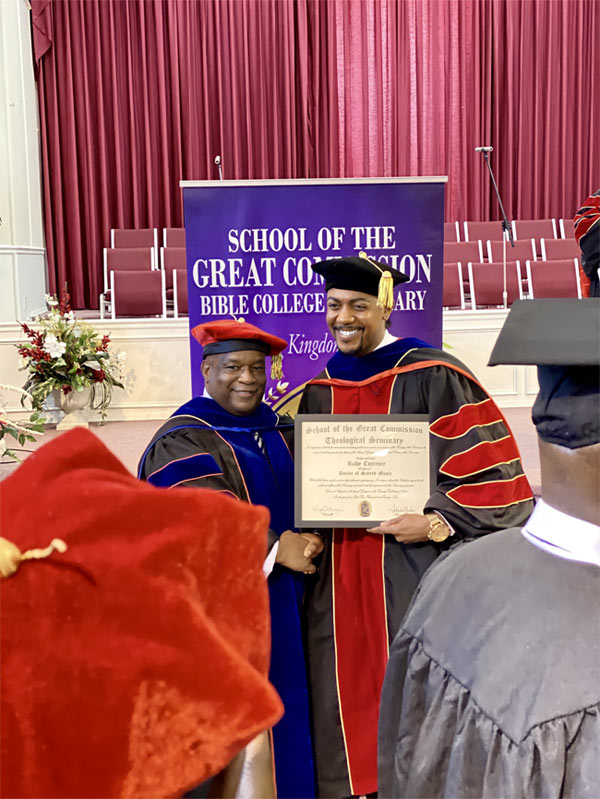 ATLANTA, GA (Wednesday, May 4, 2022) - - - After touring and performing on hundreds of college and university campuses nationwide Rudy Currence received, from The School of The Great Commission, an Honorary Degree of Doctor of Sacred Music.
