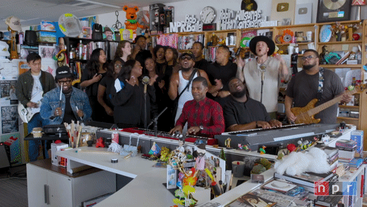 Today, GRAMMY-winning group Maverick City Music joins NPR Tiny Desk for a soul-stirring, hand-clapping concert, backed by 10 choir members, 2 sets of keys, drums, guitar, and bass –– all squeezed in for one of the first Tiny Desk concerts to return to the office. “The NPR production staff was buzzing because we had not recorded such a large ensemble in our office in more than two years” says NPR. For the finale, the genre-blending music collective is joined by 16-time Grammy winner Kirk Franklin, who Maverick City Music released collab album Kingdom Book One with last week.